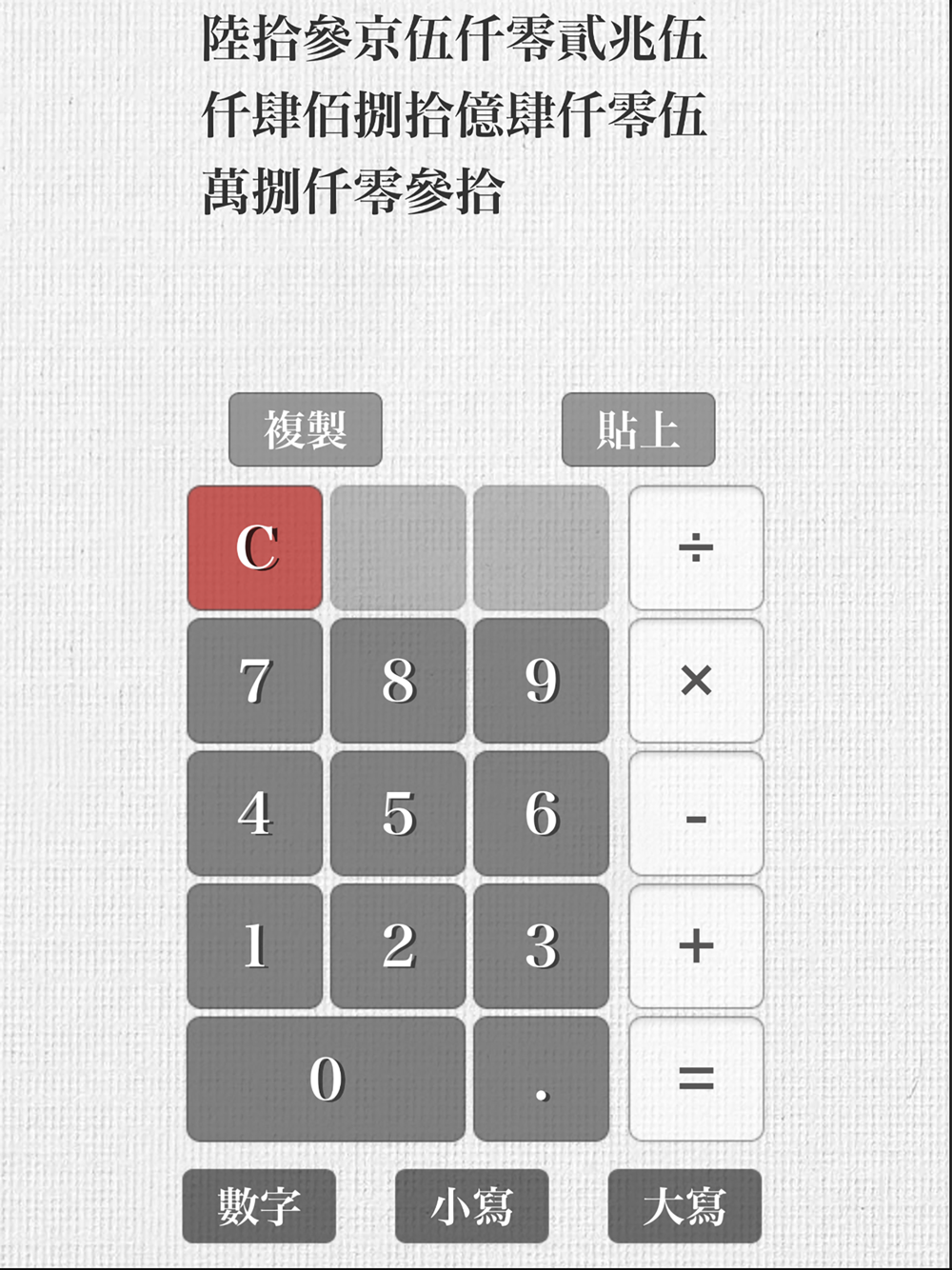 In regions influenced by Chinese characters, people often find it challenging to grasp the magnitude of a large string of numbers, as they need to count digit by digit to understand the overall numerical scale. The Chinese Calculator is designed to facilitate users within the Chinese character cultural sphere, enabling them to swiftly comprehend and recognize the scale of numbers.