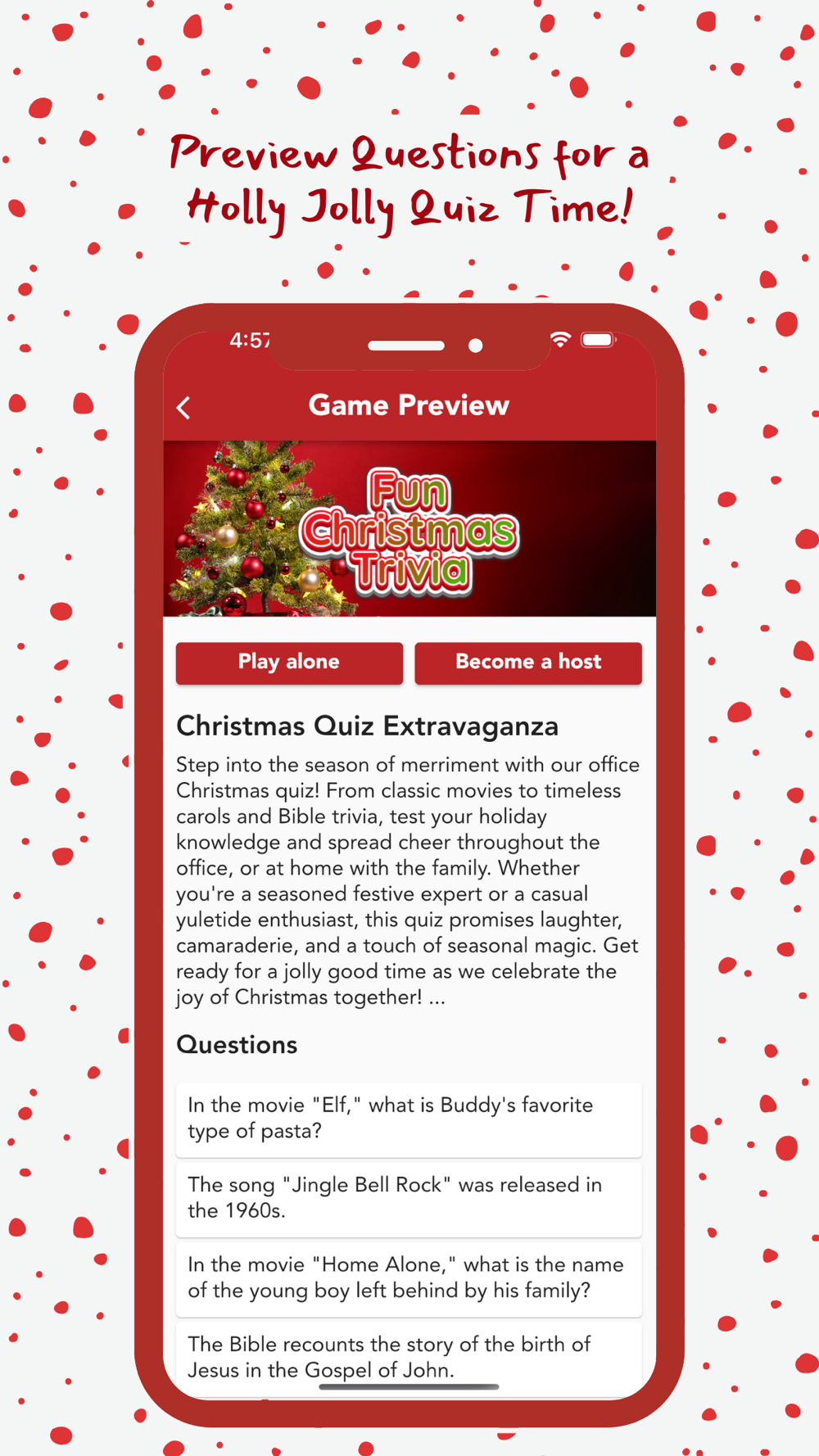 • Play and Create: Enjoy a rich library of Christmas trivia or craft personalized quizzes for a shared festive experience.