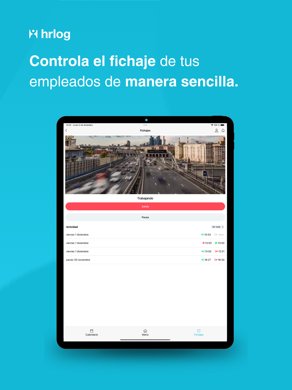 - Fichaje flexible: registra tus horas de trabajo fácilmente desde cualquier dispositivo: móvil, ordenador o tablet.