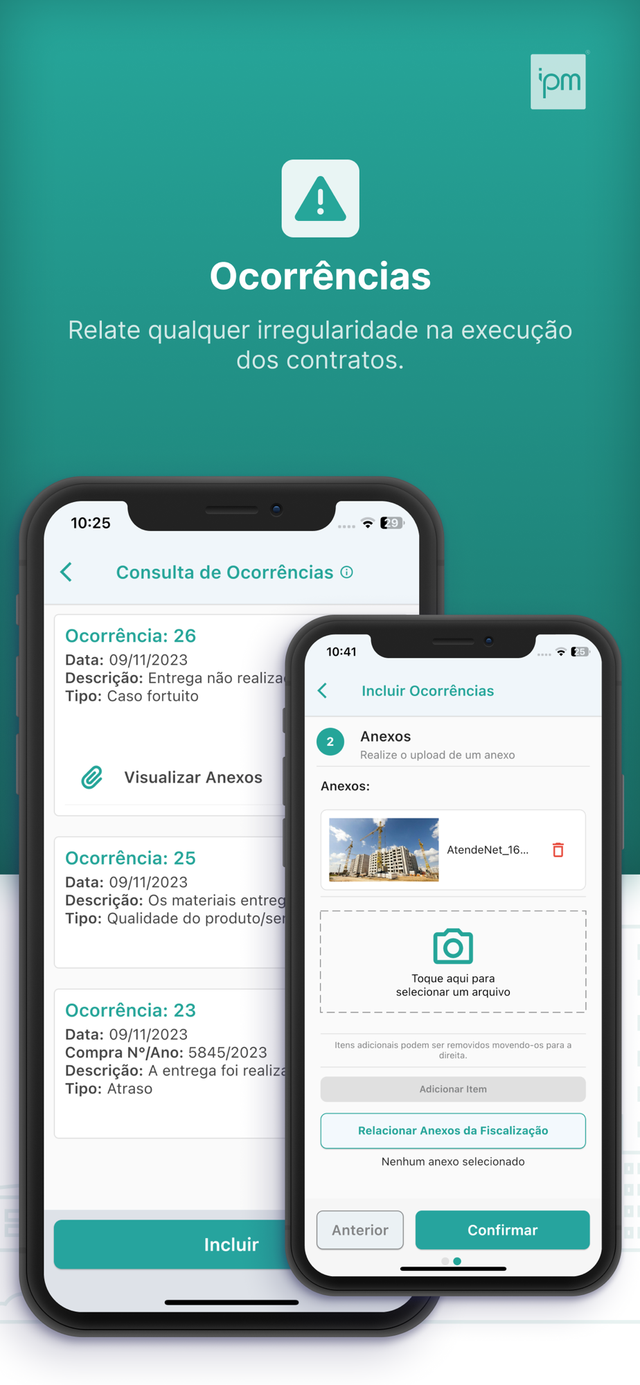 - Registrar detalhes das entregas de materiais e prestações de serviços, inclusive com fotos registradas na hora;