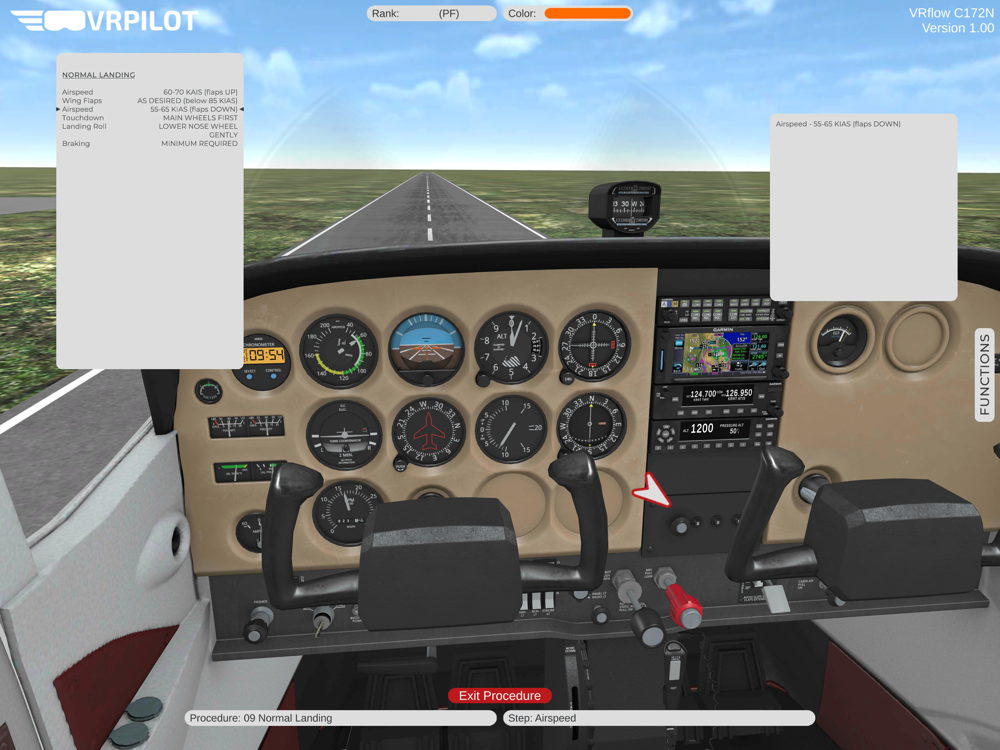 Boost your learning rate with VRflow C172N, an advanced, interactive cockpit procedure trainer for the C172 "N" variant. Get ready for your training, check ride or next flight with this strong learning tool, build specifically for efficient cockpit procedure training.