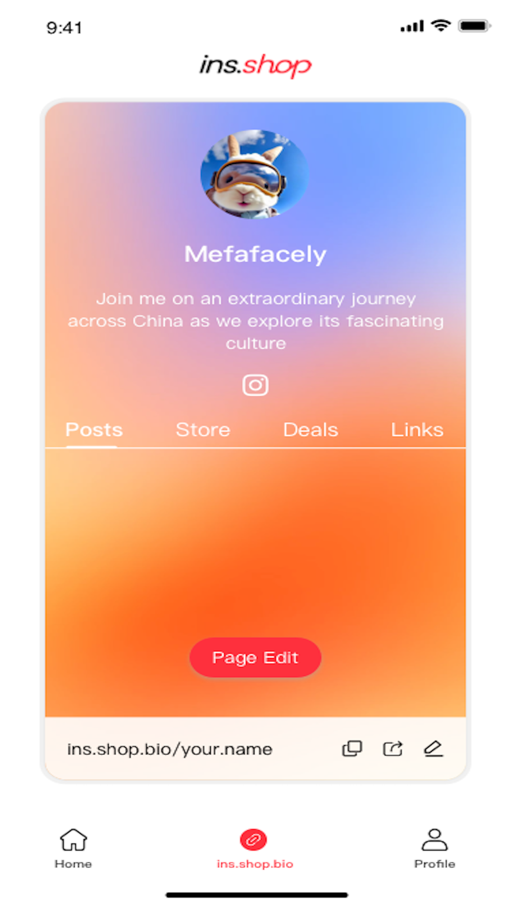 "Welcome to use the ins.shop App. This is a platform that allows you to showcase your life and set up your own shop. The lifestyle you share may attract more consumers to make purchases, thereby monetizing your content.