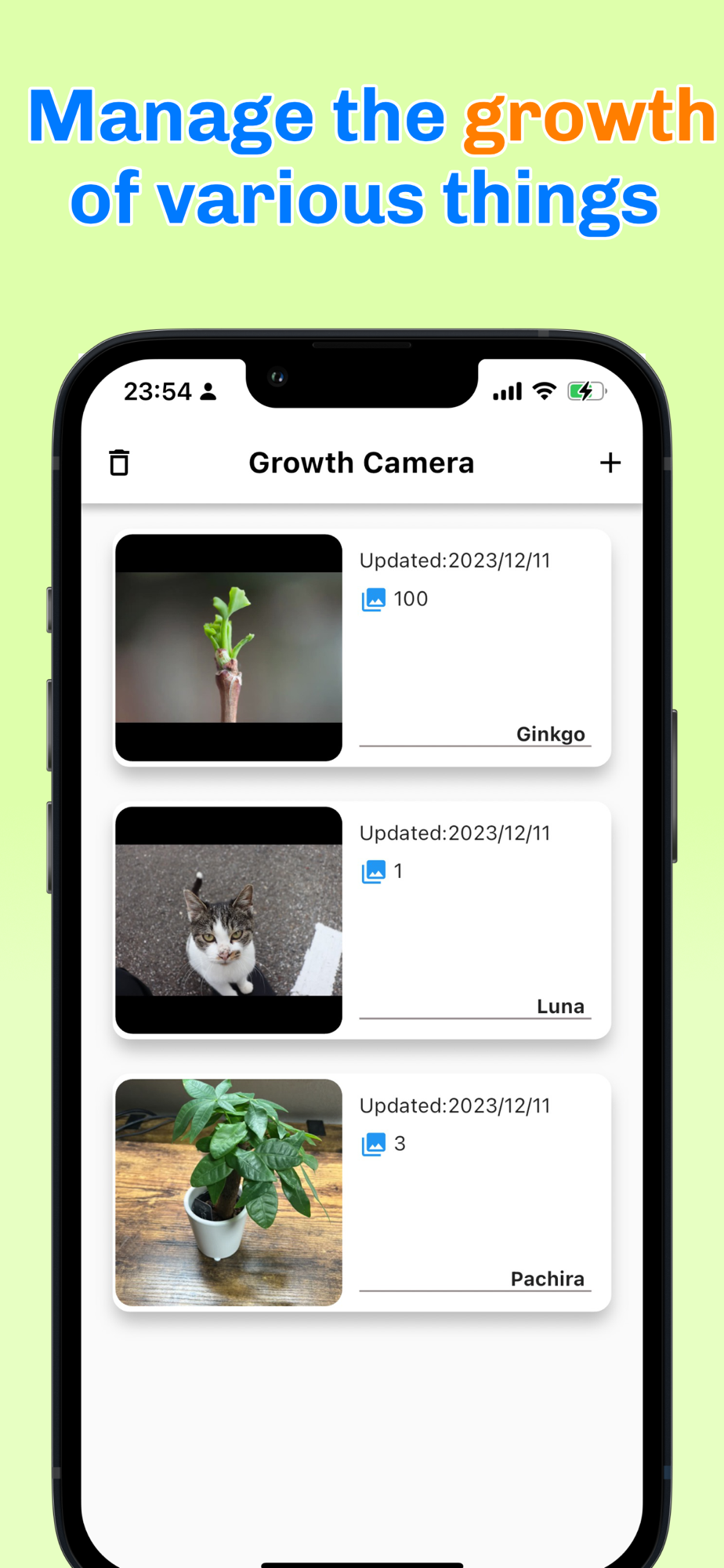 With this app, you can time-lapse the growth of any subject, including plants, pets, and self-growth.