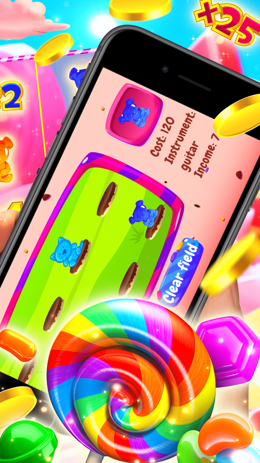 Build your candy collection and customize your sweet orchestra with a plethora of candies, from lollipop drummers to gumdrop trumpeters.