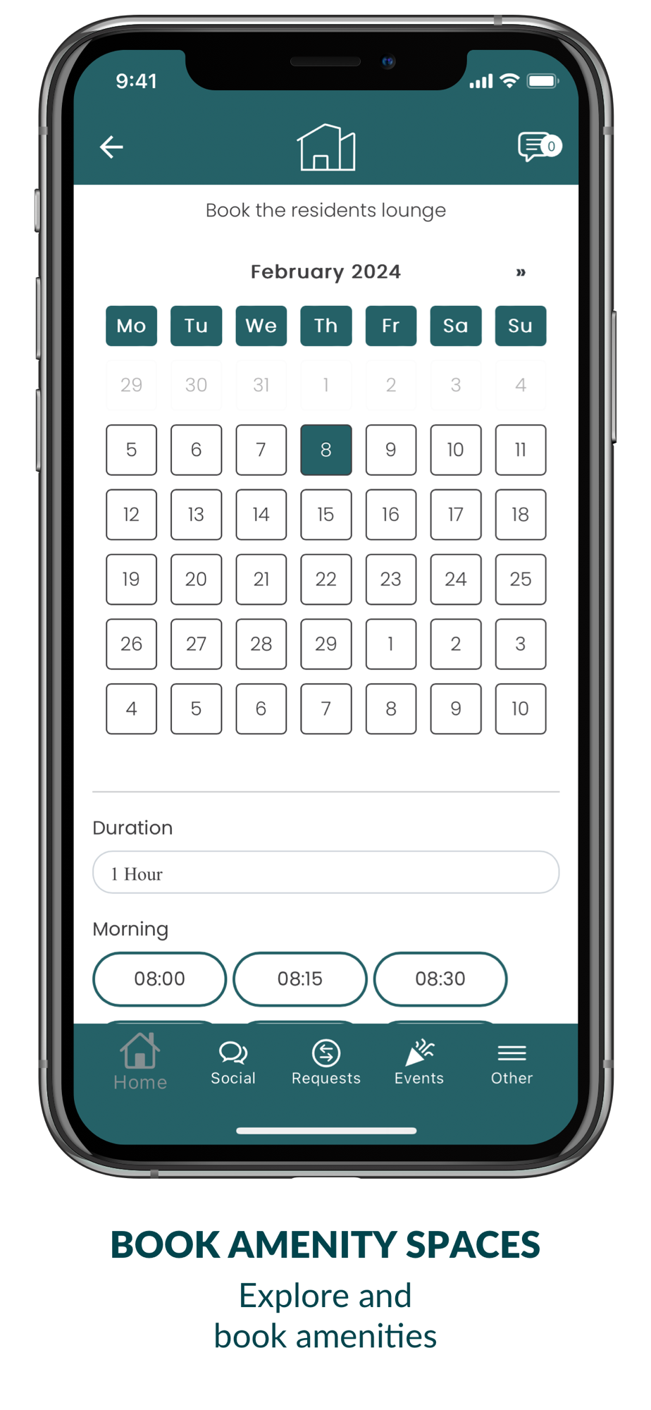 - Explore your resident events and social calendar