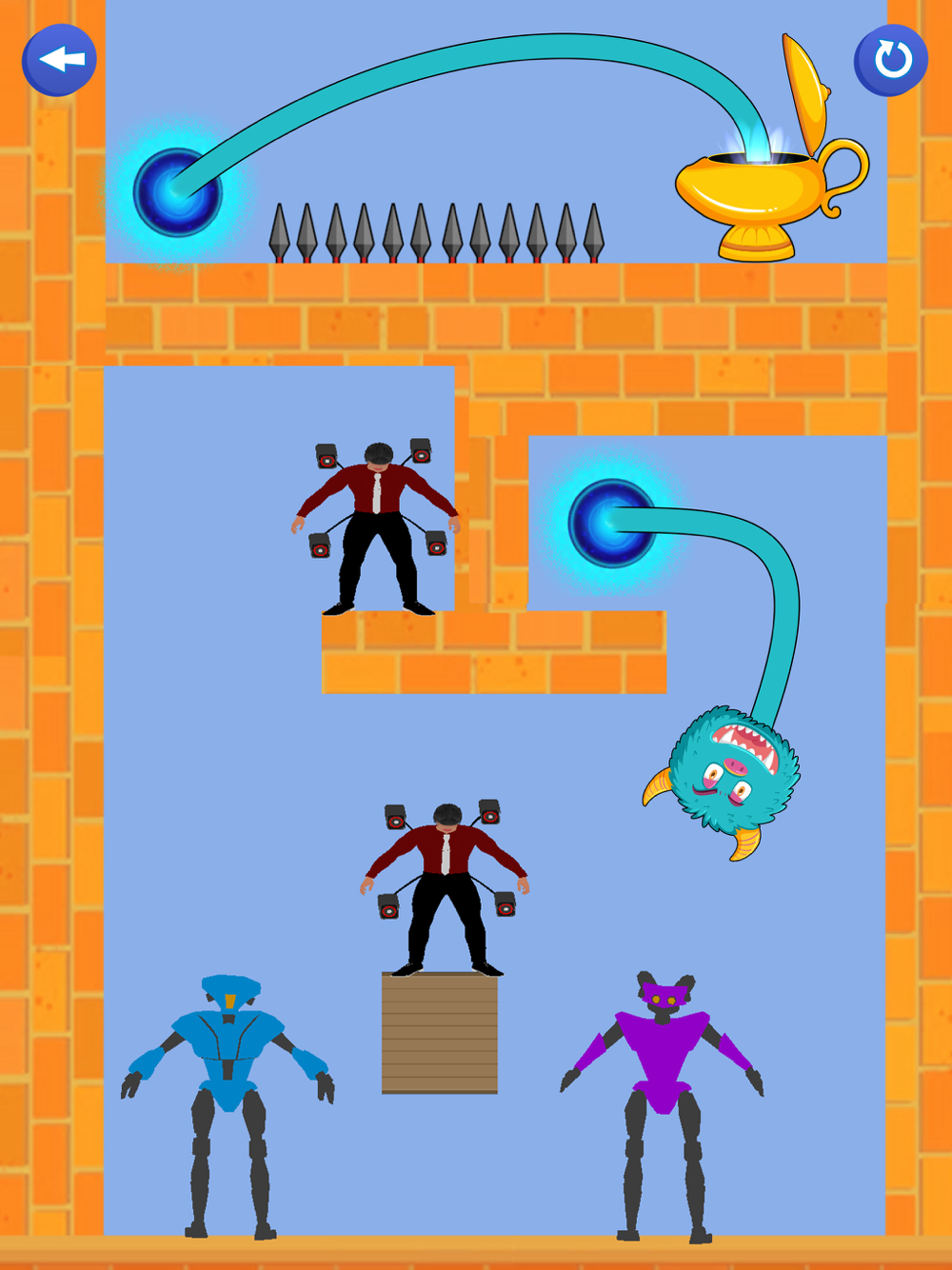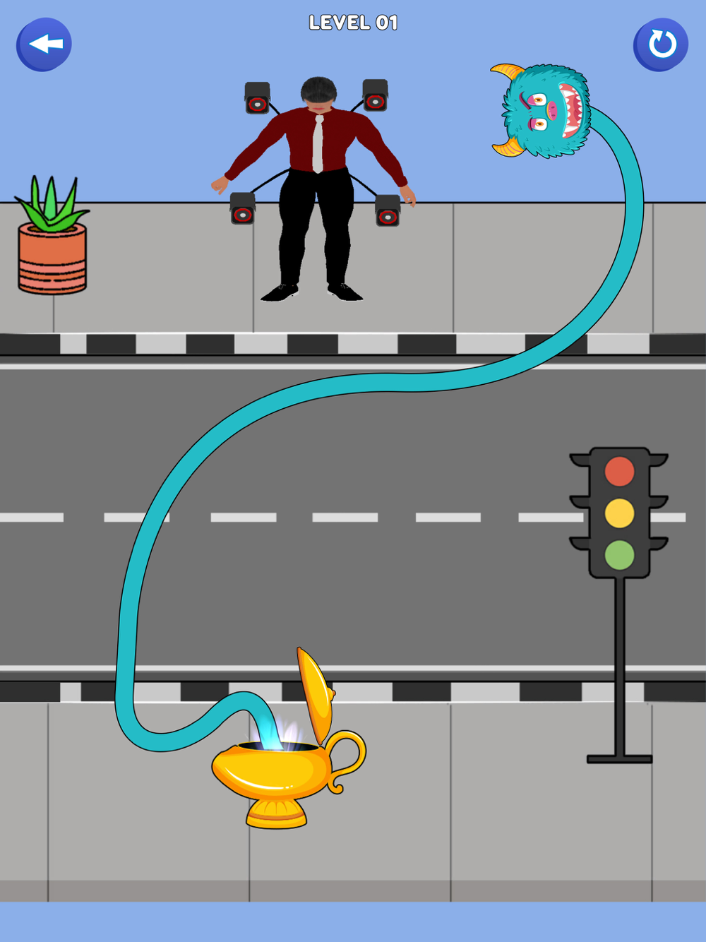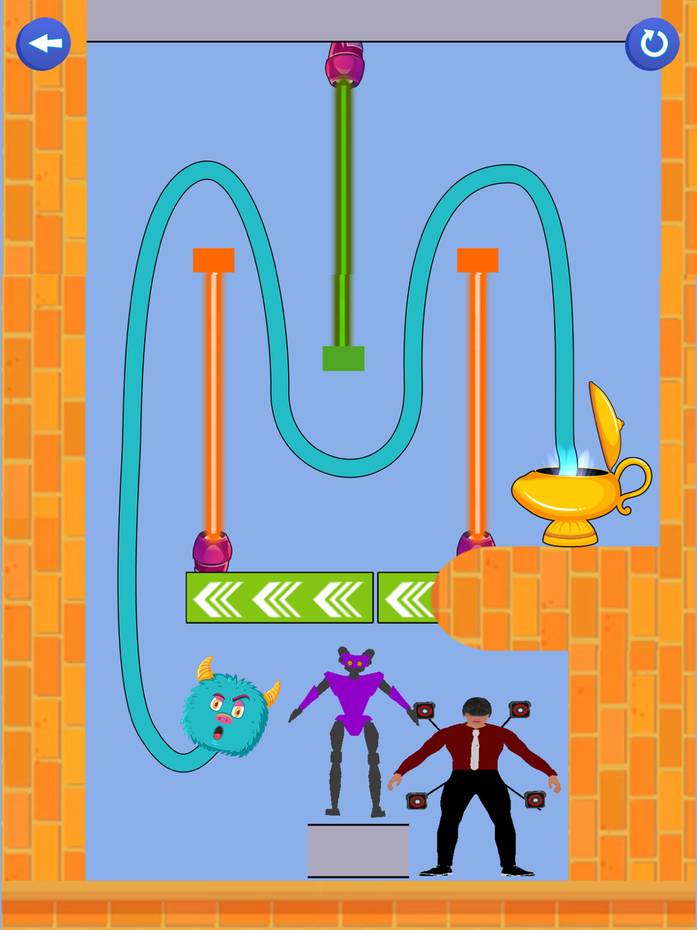 Robots have attacked the city and are hiding in some hideouts but don't worry as you can find them and fight with them by unleashing the monster from the nearest available device like a lamp, pot, washing machine, or any other device. Use your brain and solve the puzzle to reach and attack robots hidden in their hideouts. Best puzzle with drawing experience, Download now and draw your path to enemies.