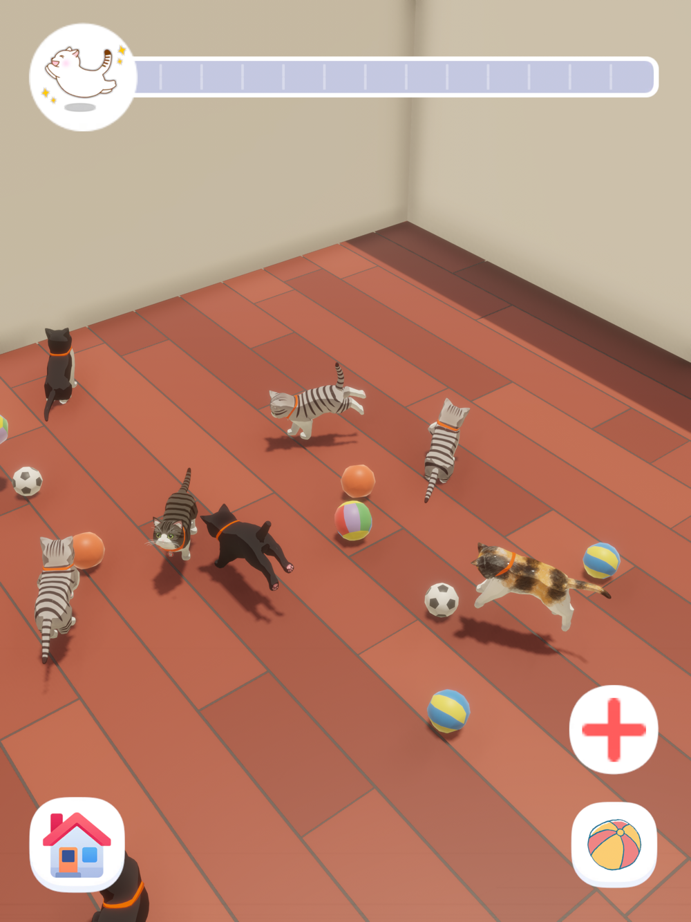 Earn coins by playing mini-games with the kittens and get more attractive furniture.