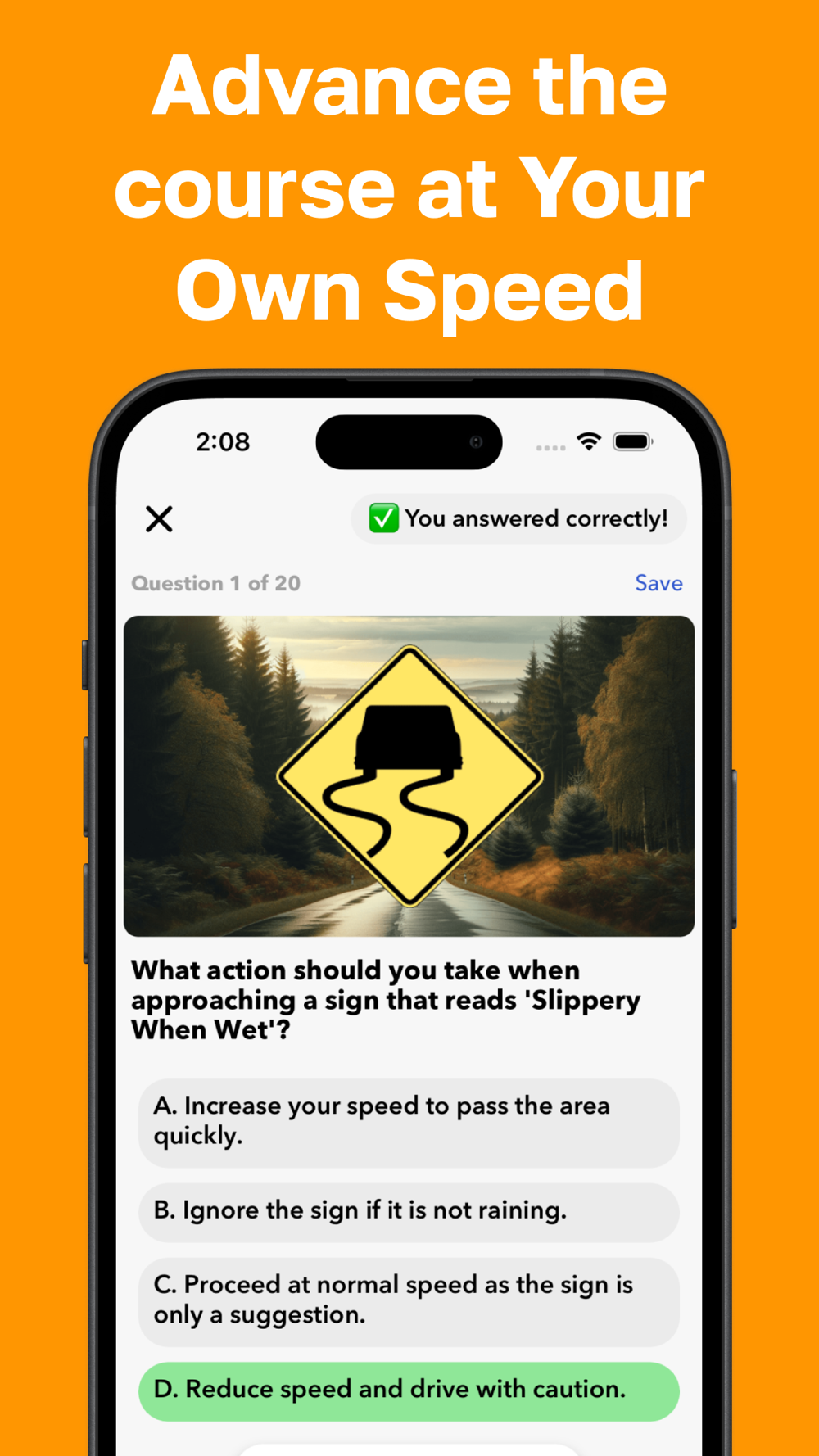 Our app covers every aspect of the driving manual, transforming it into engaging and easy-to-understand modules. Whether it's road signs, traffic rules, or safe driving practices, DMV Practice Test・AI Driver Ed offers a complete learning experience.
