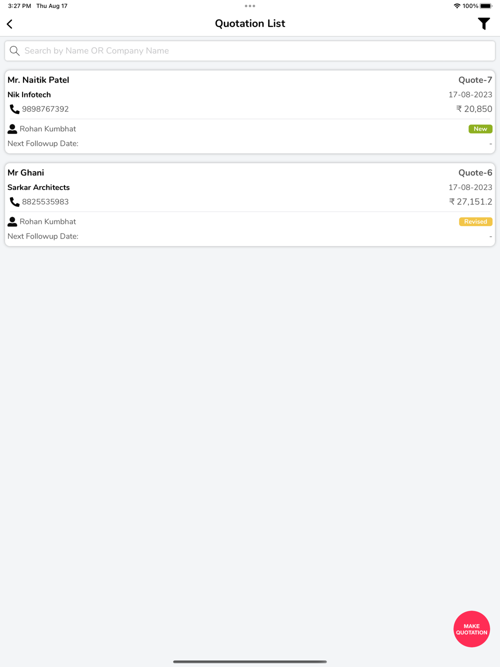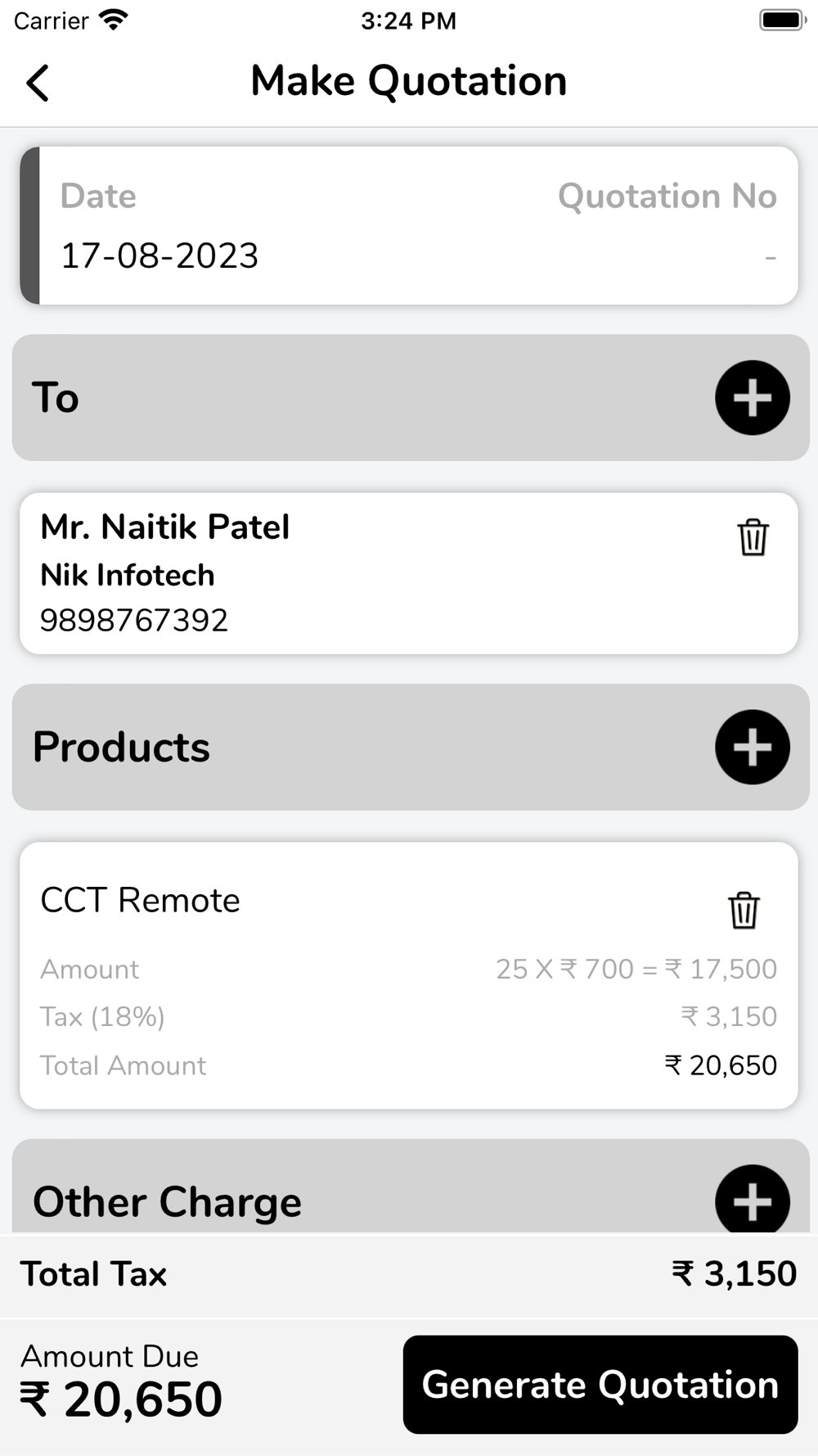 - Easily save your quotation/estimate in the phone and access it anytime in your phone.