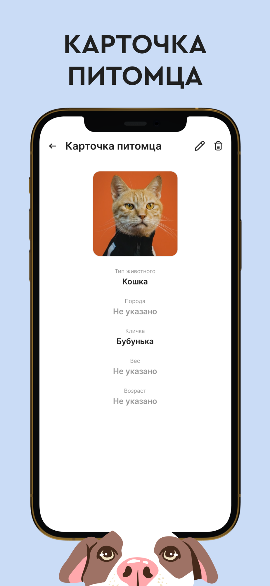 Поможет собрать все важное в одном месте и всегда иметь доступ к необходимому, например, записать даты вакцинаций, заполнить запись к грумеру, снятые мерки, важные справки и документы, а так же многое другое.