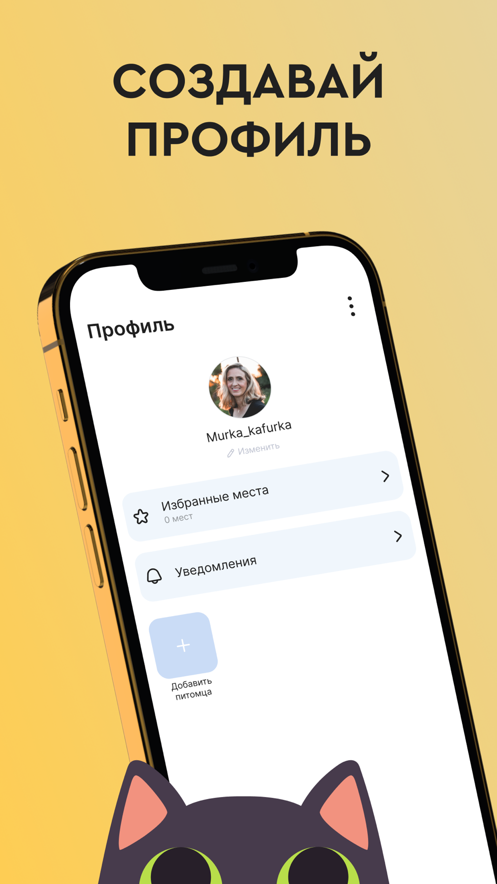 Добавляйте точки на карте с местами, которые понравятся и другим владельцам животных. Отмечайте места, которые вам кажутся полезными или интересными для других владельцев животных.