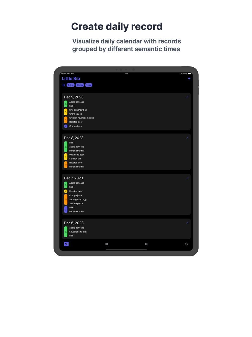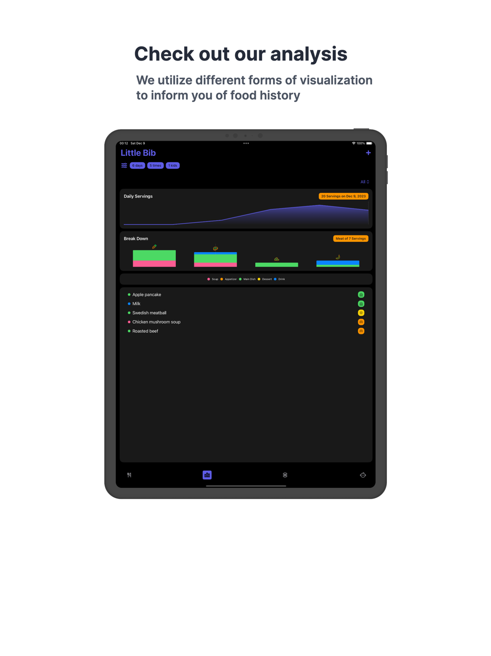 If you want an easy-to-use and "ADS-FREE" App to keep tracking your kid's meal history to ensure a healthy and balanced diet, like what kinds of ingredient are included and when they are served, you are at the right place! This App will serve you with all those basic features, and more importantly, the analysis page with different plots and charts to help you visualize all trends.