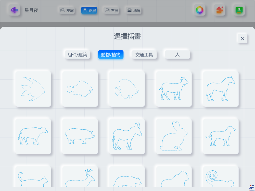 在大屏幕上欣赏自己所画山河湖海,还能把画的动物、汽车、轮船、飞机等组件动起来;