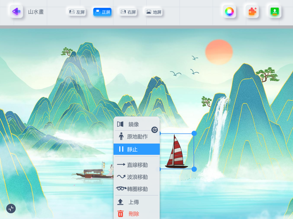 画中的组件可选择不同的动作、移动路线和方式,绘画动起来更精彩;