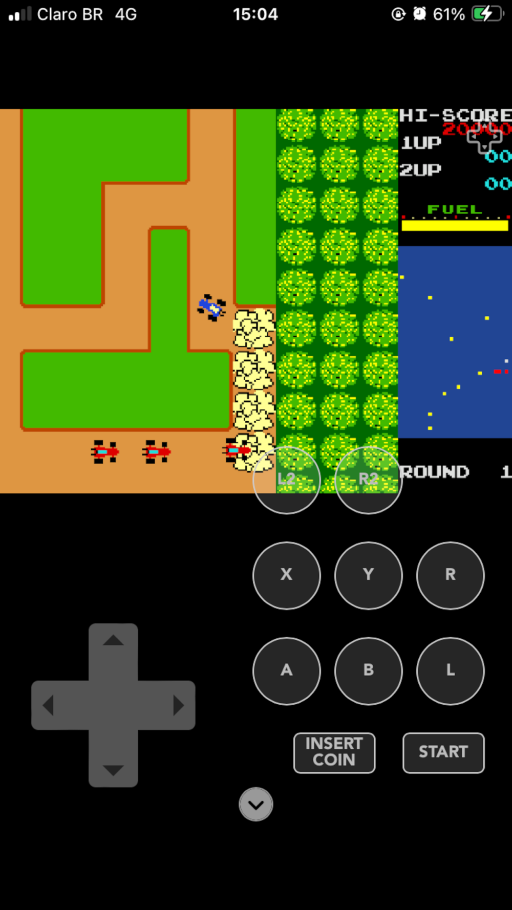 A video game emulator, Rally-X is a maze chase game in which the player controls a blue Formula 1 racing car. The aim is to collect yellow flags that are scattered throughout an enclosed maze, while avoiding colliding with red cars that are chasing the player.