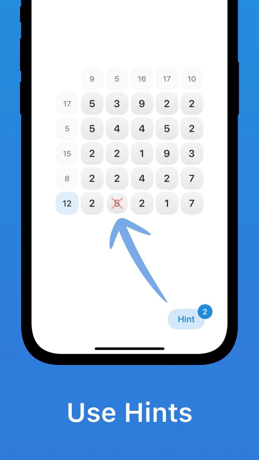 RiddleSum is a fun number puzzle game that helps you get better at math. The main goal is to make the sums of numbers in each row and column the same as the numbers shown on the side of the board. It's a great way to test and improve your math and logic skills!