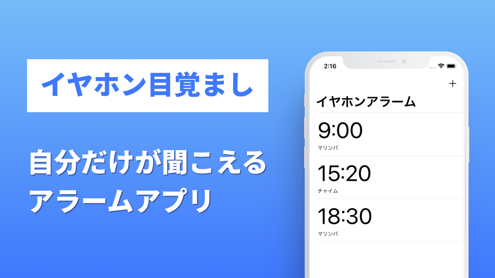 イヤホンからアラーム音が鳴る目覚まし時計アプリ!