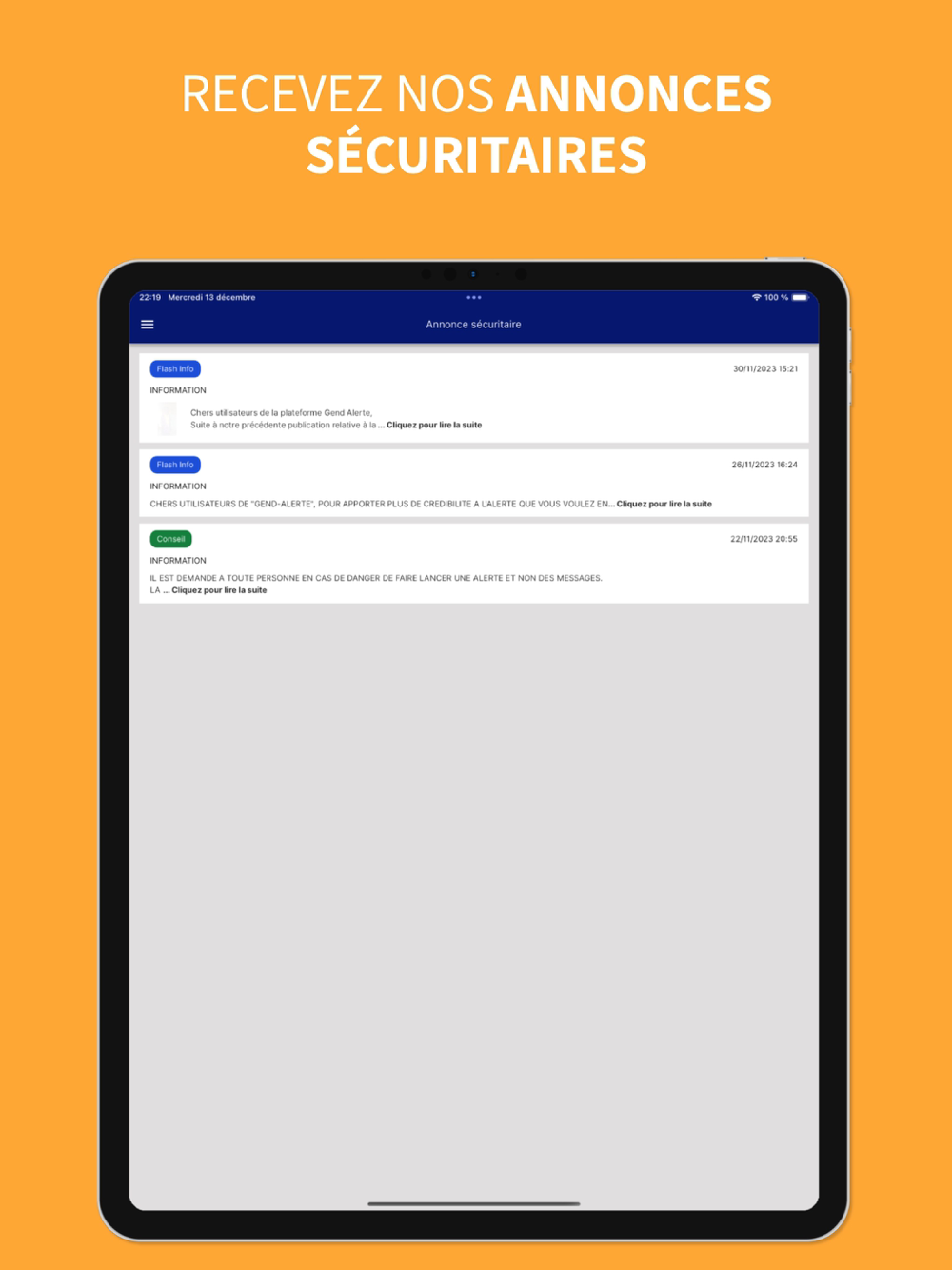Gend Alerte permet en 3 clics, à une personne en détresse d'actionner un système automatisé d'alerte afin d'obtenir du secours ou une assistance des forces de sécurité.