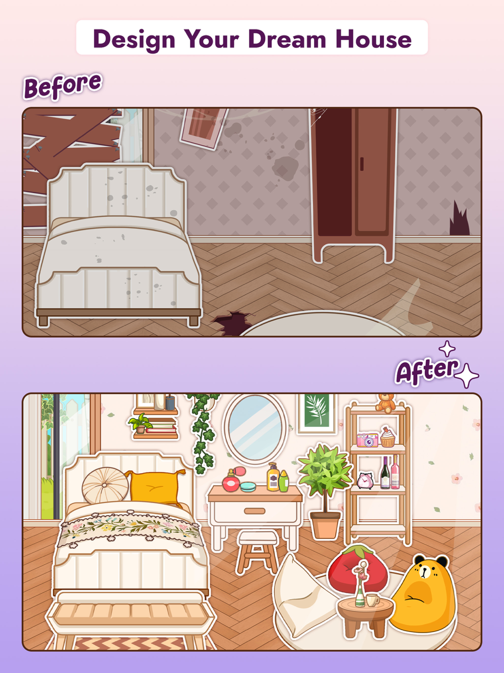 Unleash your interior design prowess as you curate a dream house for your chibi dolls. Shape cozy bedrooms, stylish living areas, charming play spaces, and delightful makeover zones, turning your doll's house into a realm of magic and beauty fit for a fashion princess.