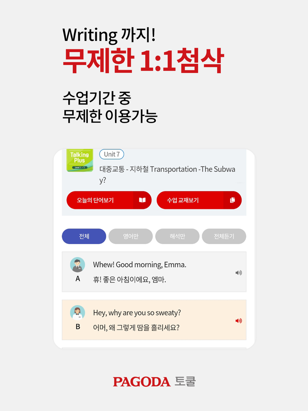 말하기 듣기 쓰기까지 한번에 해결해요.