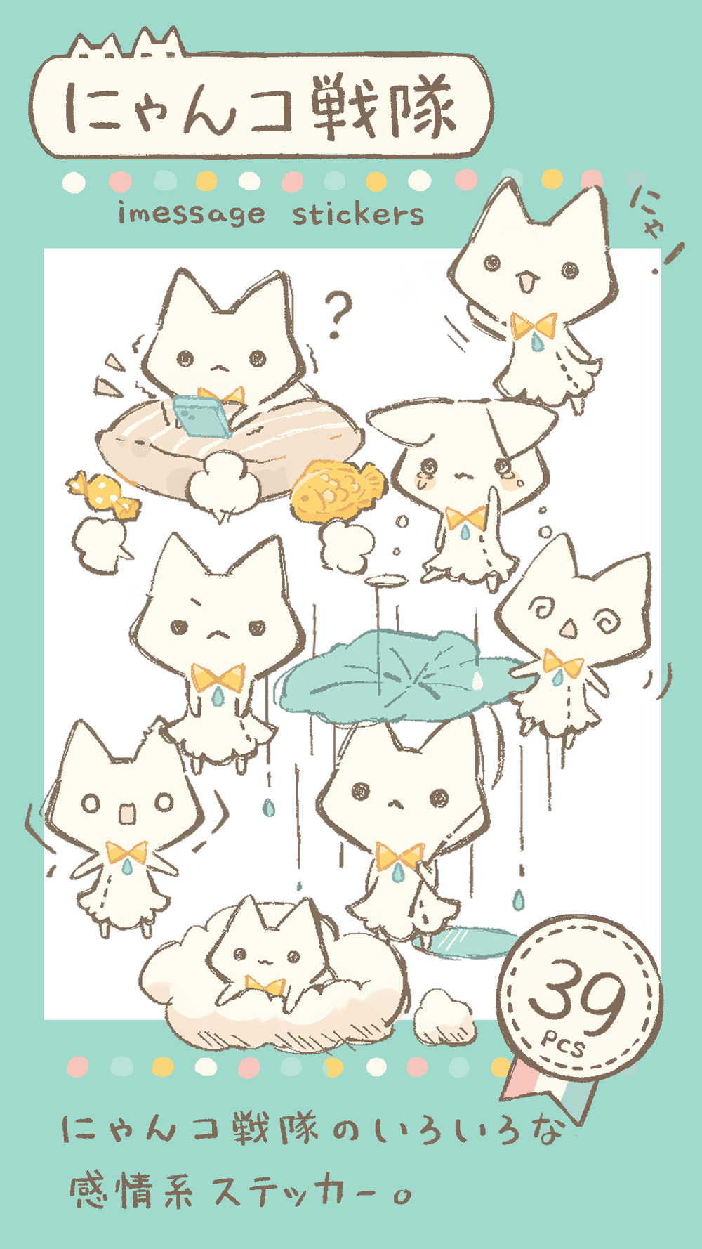 天気とたたかうにゃんコ戦隊のいろいろな感情系ステッカー39種類○