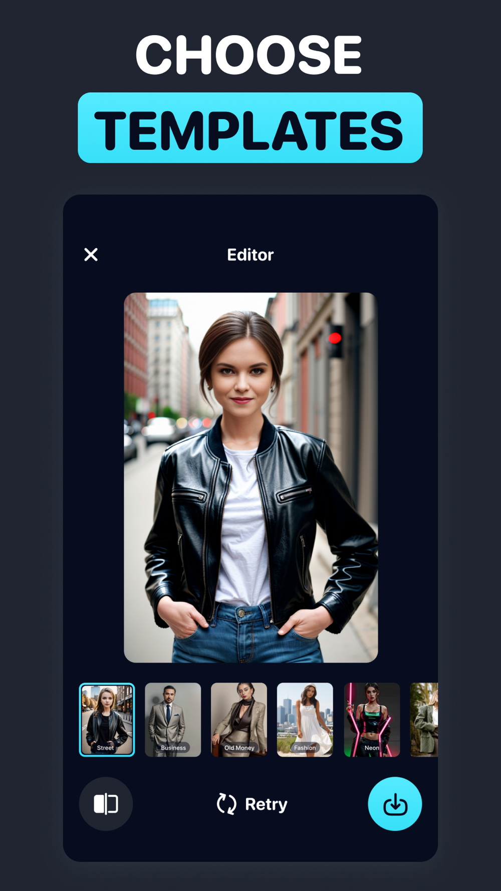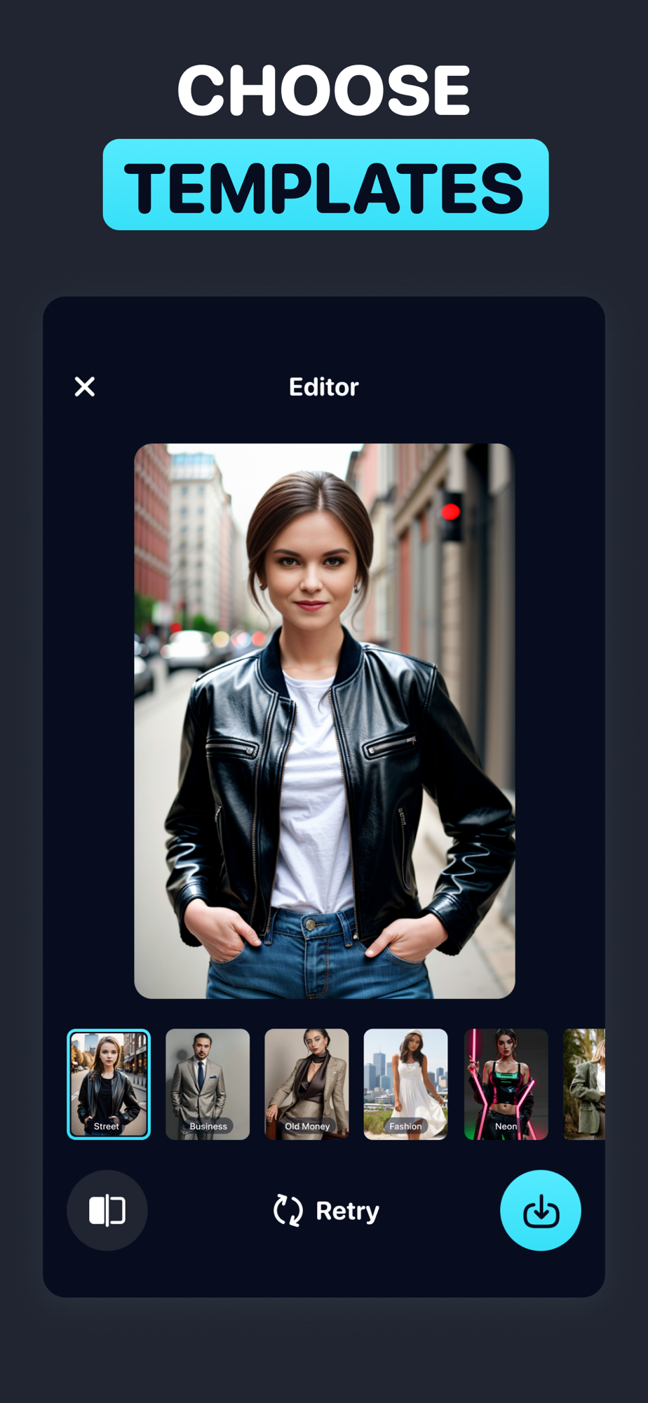 Turn any ordinary photo into a professional one with one click! You didn't like the generated photo, try again. No restrictions for creativity.