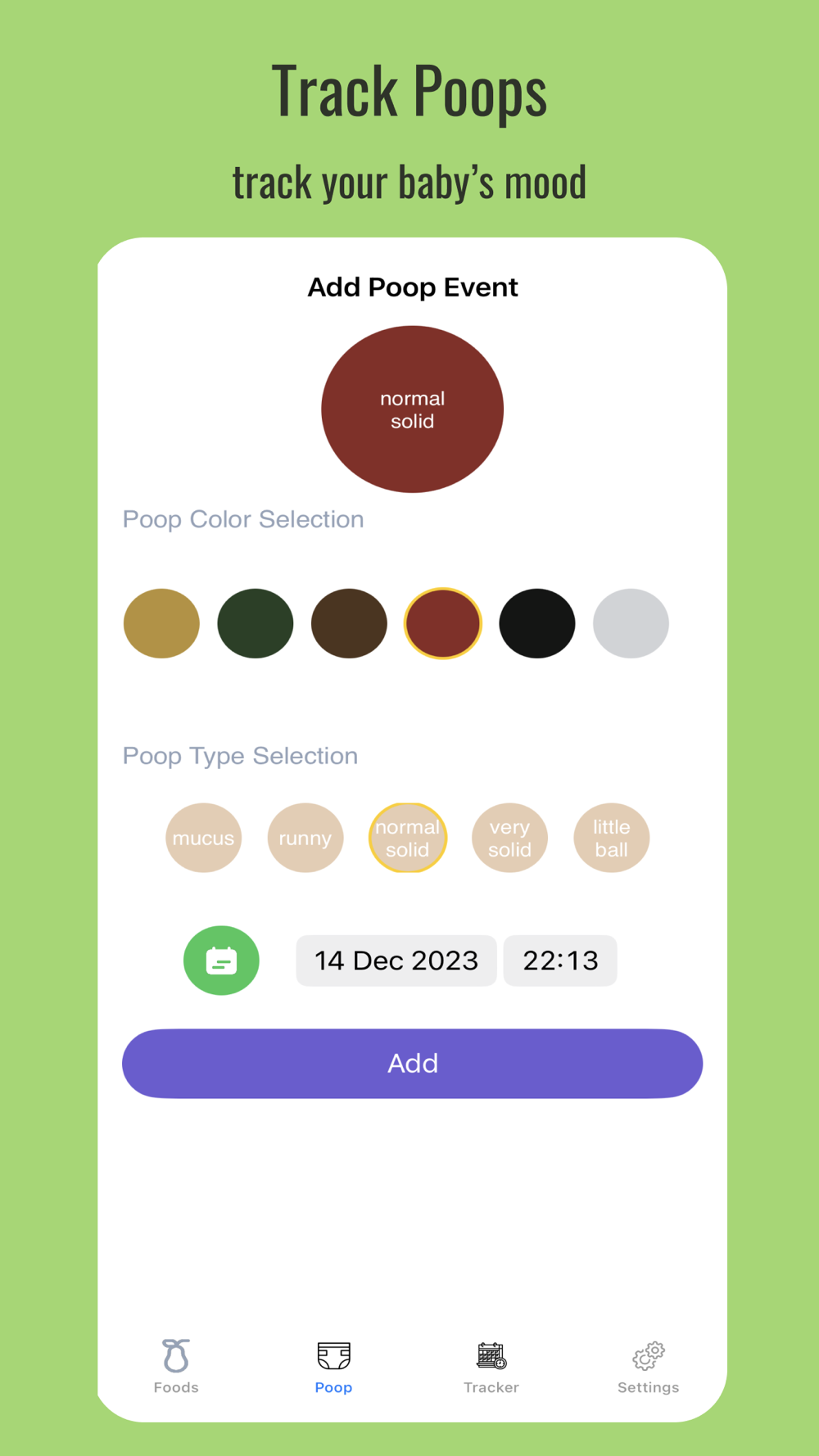 With Safely app, you can also track and noted the form of the poops which always helps parents to get insights about the introduced solids. Color and types of poop can be noted as well.