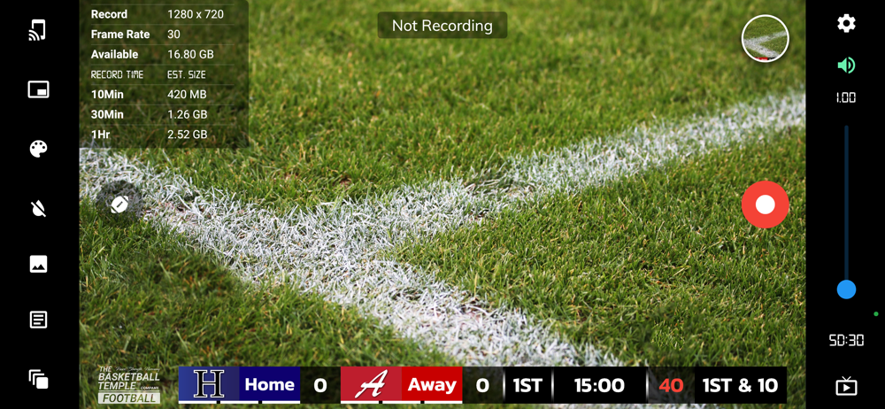 BT Football Camera uses a lot of video processing and older phones may experience video lag or may not operate correctly. You may test the app and return it if your phone is not capable. BT Camera is a football (US) game recording app that includes score, timer, and brand overlays on top of video. BT Camera connects seamlessly into the BT Football apps system (e.g. with the free BT Controller app, the BT Scoreboard app, and more) for synchronization of time and score across all devices and remote control. In addition, choose custom pictures from your gallery to display during timeouts! This could be used for custom advertising in your football games. Upgrade your football game footage today with the BT Camera and Scoreboard apps!