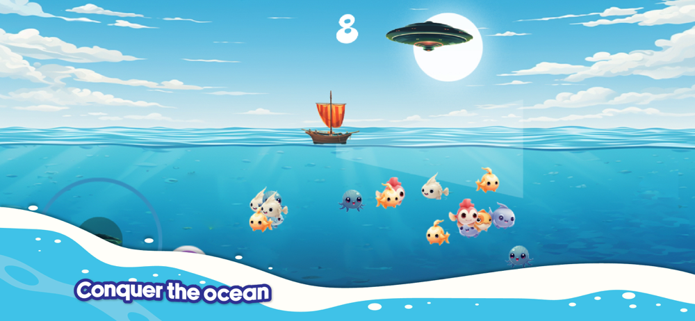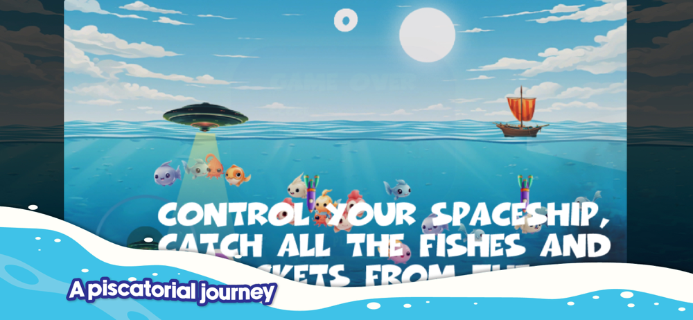 Move the spaceship and press the button to shine light down to attract fish from the sea onto the spaceship. While smoking fish, there will be fishermen with patrol lights. Avoid the fishermen's lights to avoid being detected.