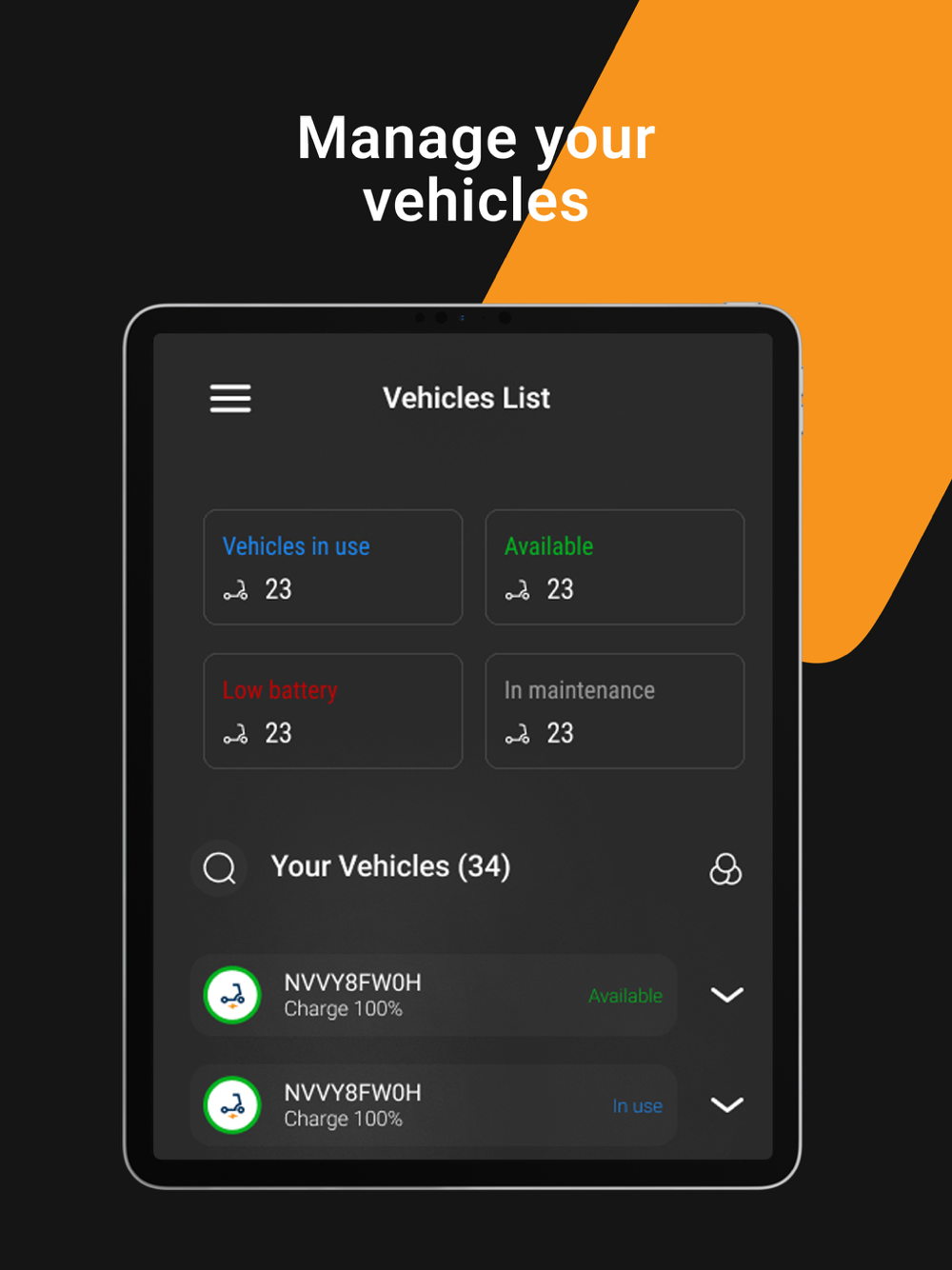 • Efficiently manage your scooter and bicycle fleet through a user-friendly dashboard.