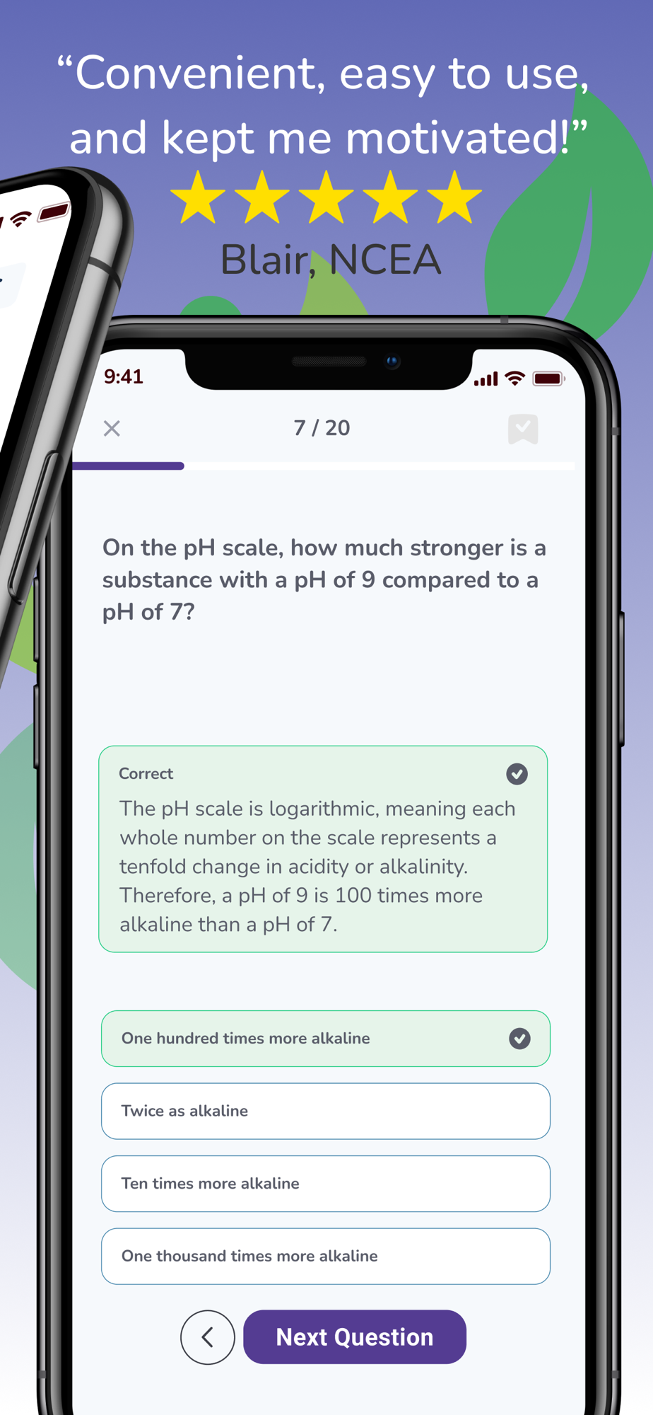 Instant feedback with comprehensive explanations for on-the-go learning.