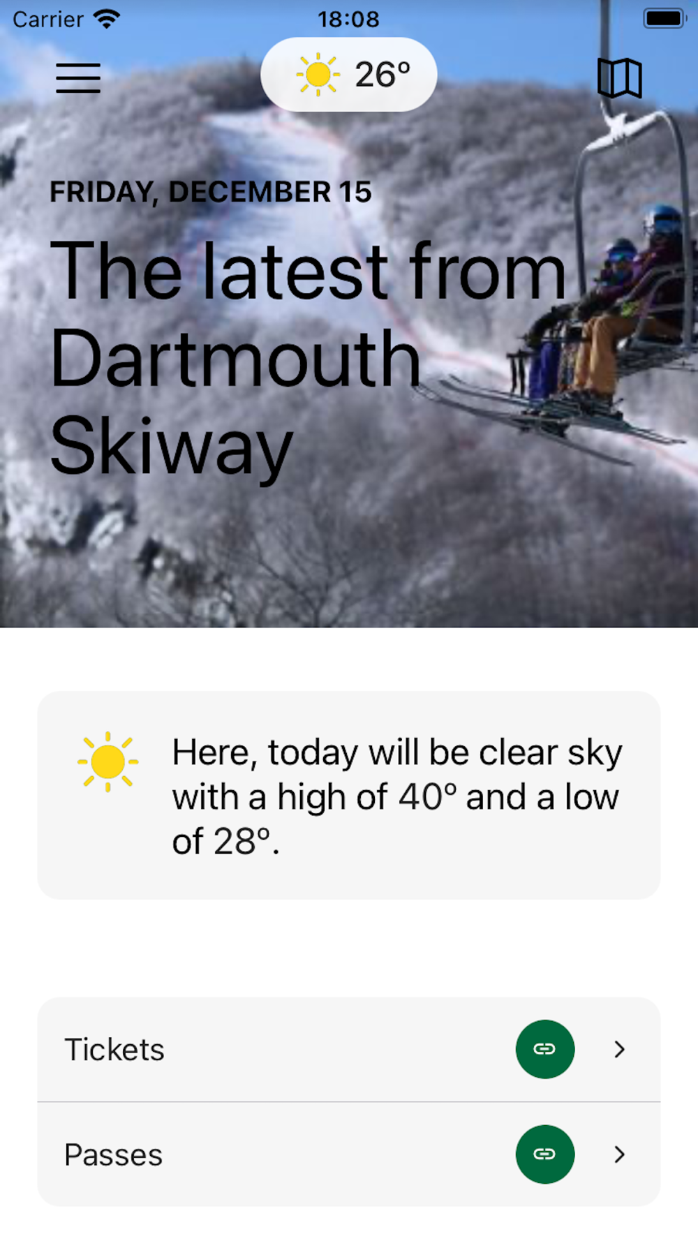 The all-new Dartmouth Skiway app puts everything you need to know about Dartmouth Skiway at your fingertips, including:
