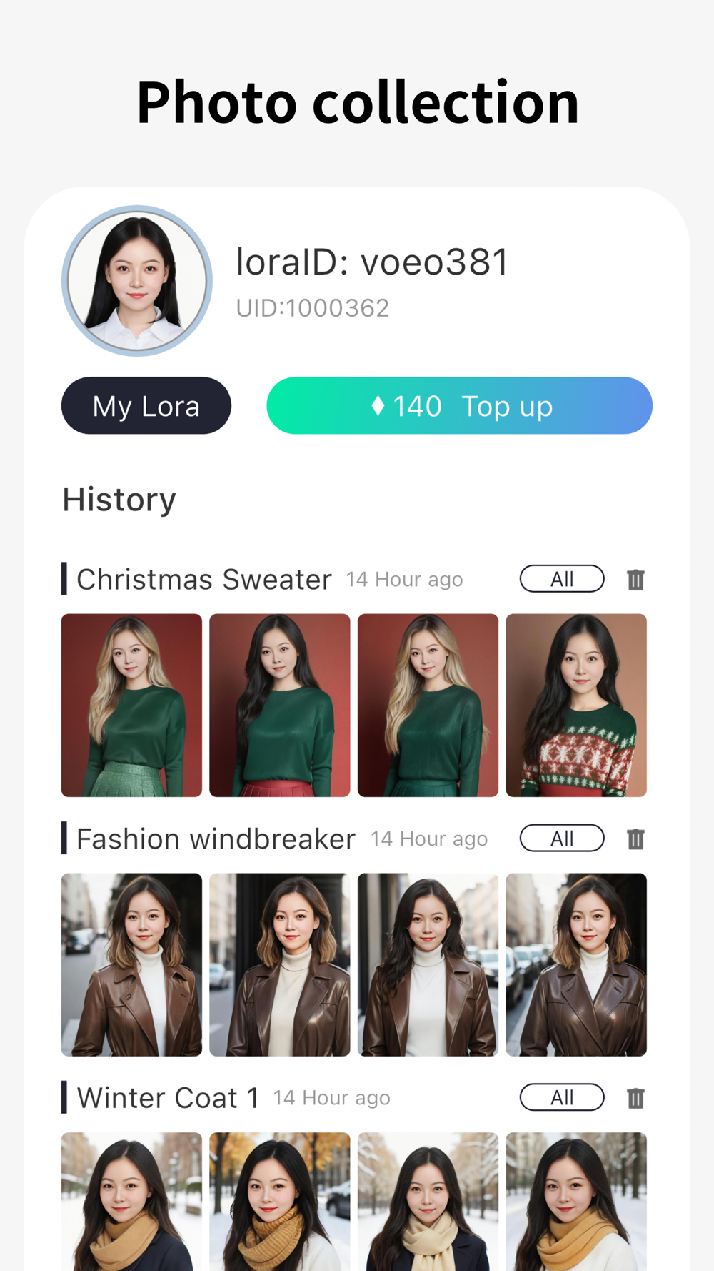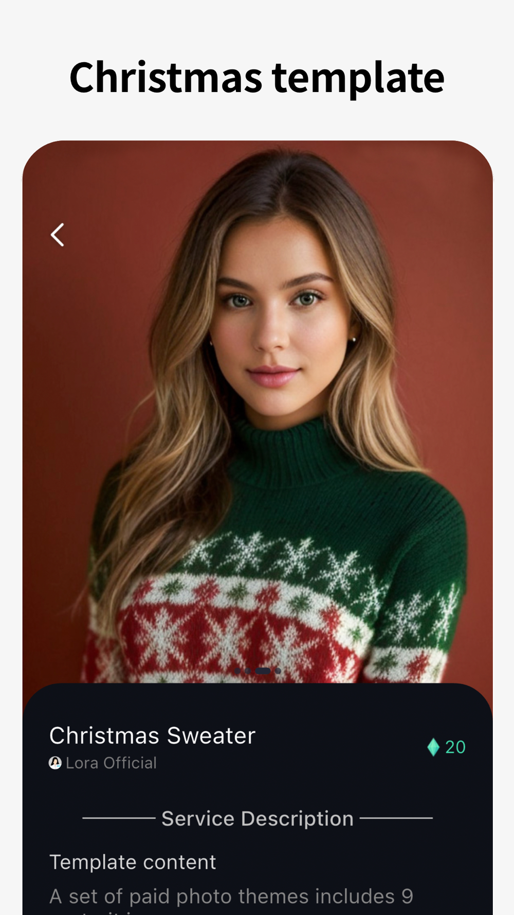 ailora is an online photo generation app that creates your face model based on AI learning capabilities, and then uses the facial model to generate photo photos with various styles.