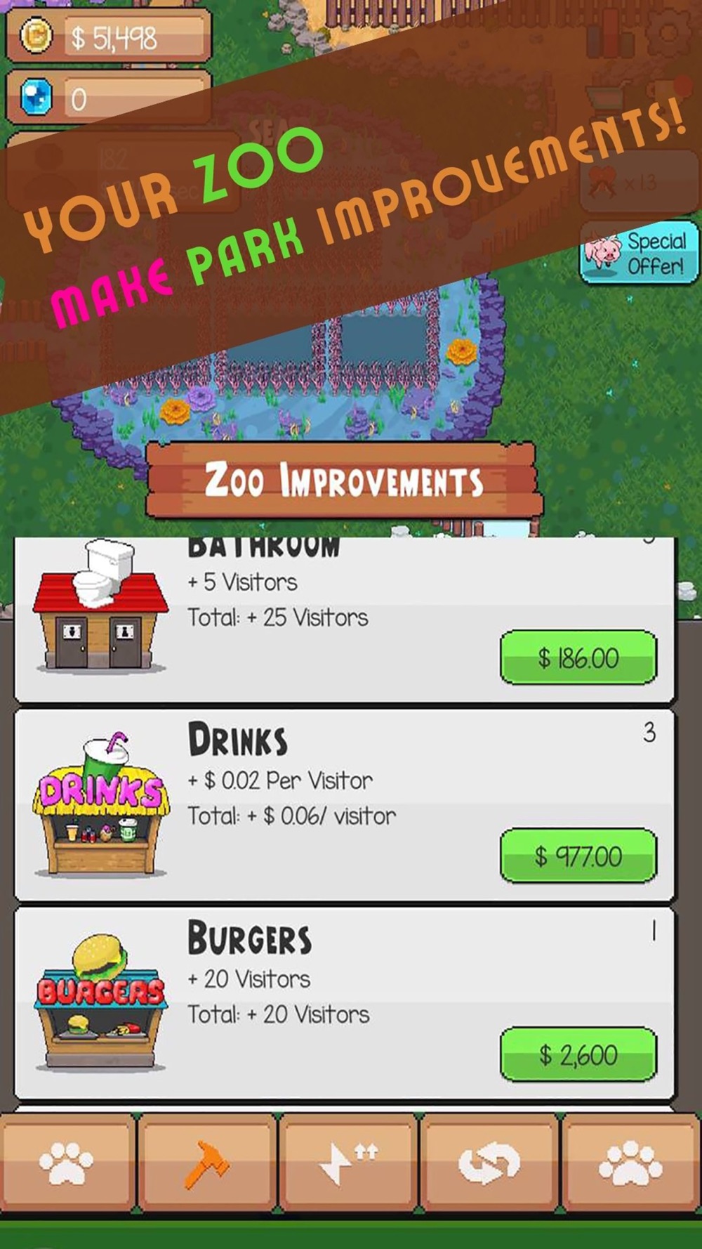 Strategically invest your resources to enhance habitats, breed rare species, and optimize attractions, all while aiming for maximum profitability. The fate of your zoo is in your hands – grow its value, attract visitors, and make it a thriving hub of entertainment and education.