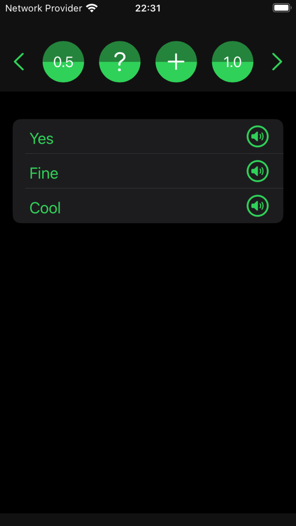 For ease and speed of use, the application has three lists of phrases - red, green and blue. To switch between lists, click on the arrows along the edges at the top of the screen.