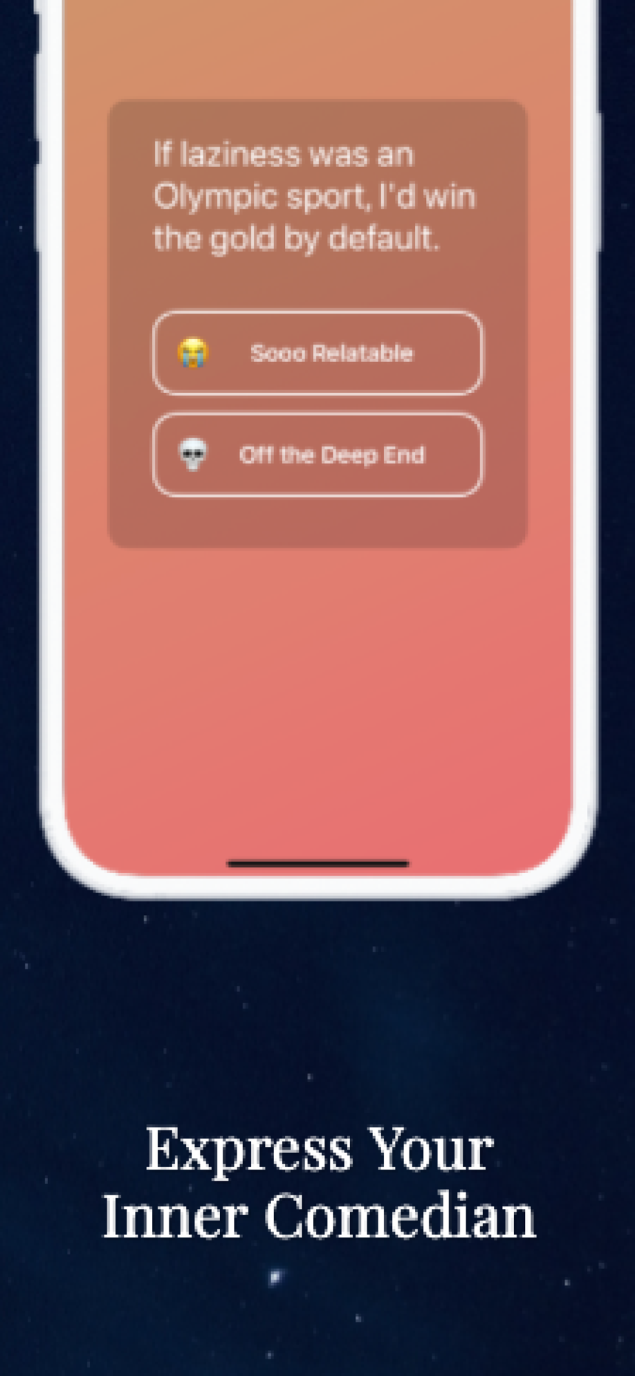 Discover a community that gets your sense of humor. Swipe through a daily dose of laughter with thoughts shared by others.