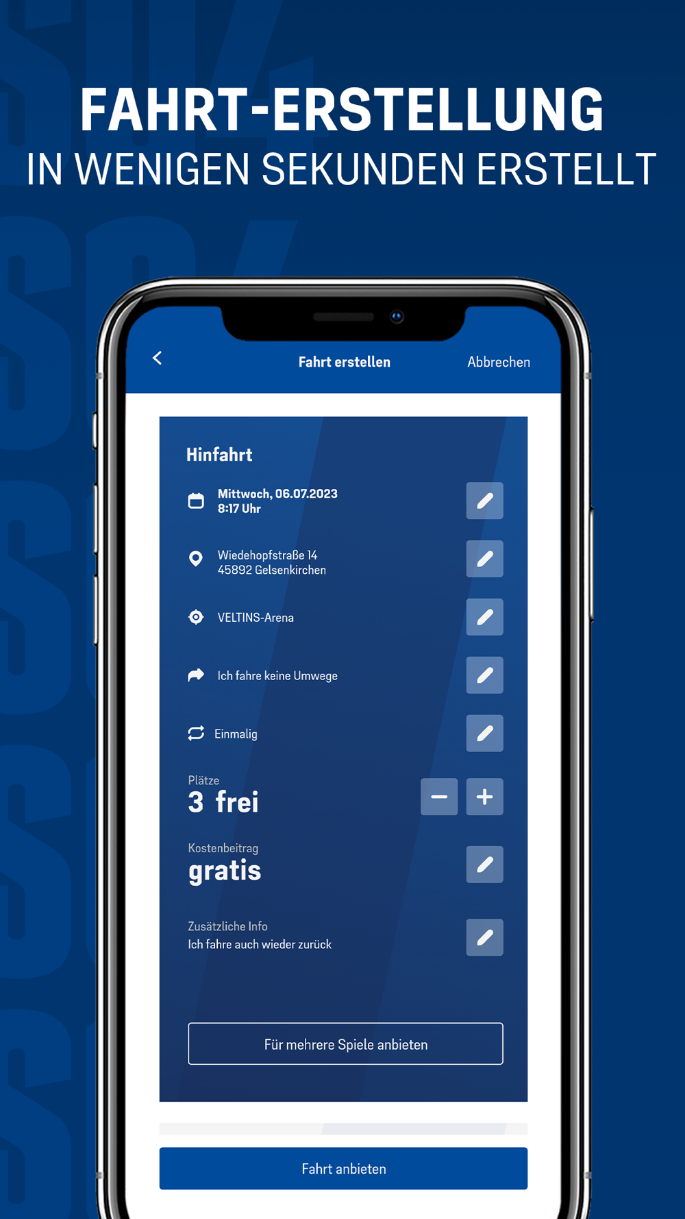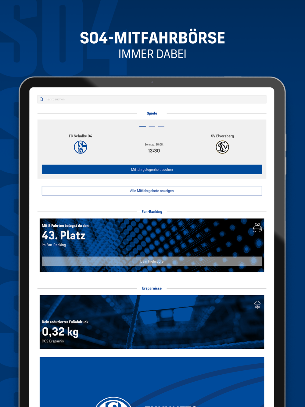 • Dank zahlreicher Mitfahrangebote anderer S04-Fans gelangst Du entspannt zum Spiel.