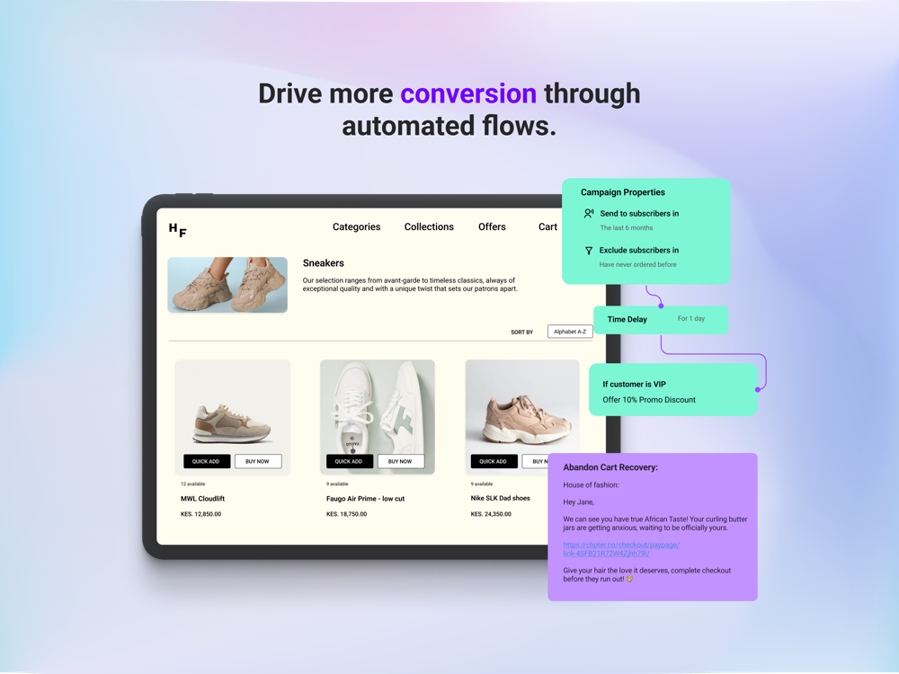 2. Automate SMS and WhatsApp for abandoned carts recovery and send personalised campaigns on new products, powered by powerful customer segmentation.