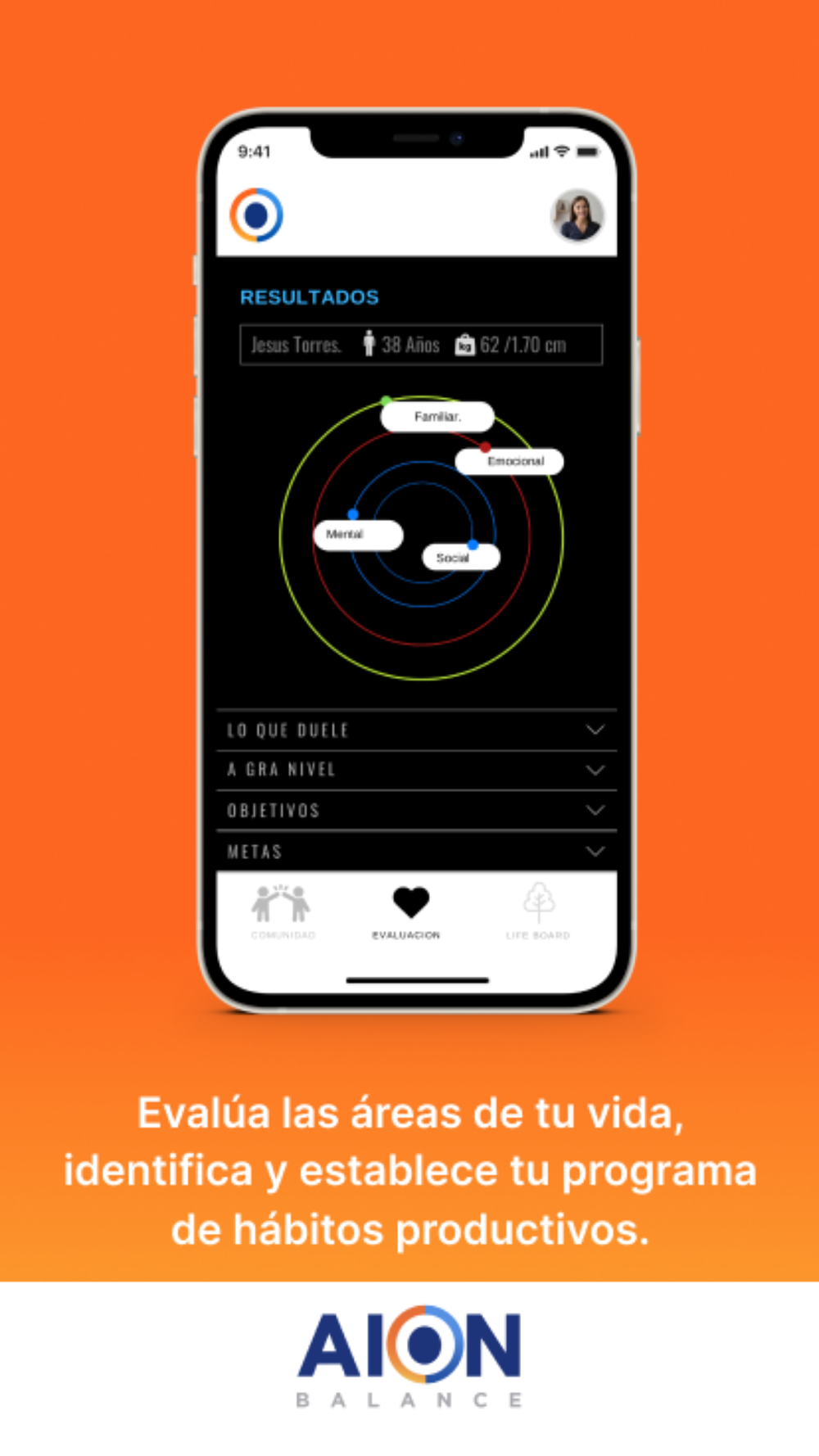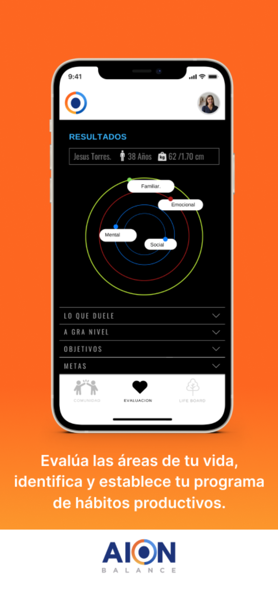 - Mejora Continua: Equipada con herramientas y metodologías para evaluar y perfeccionar los distintos aspectos de tu vida, AION Balance es el nexo entre tú y una versión mejorada de ti mismo.