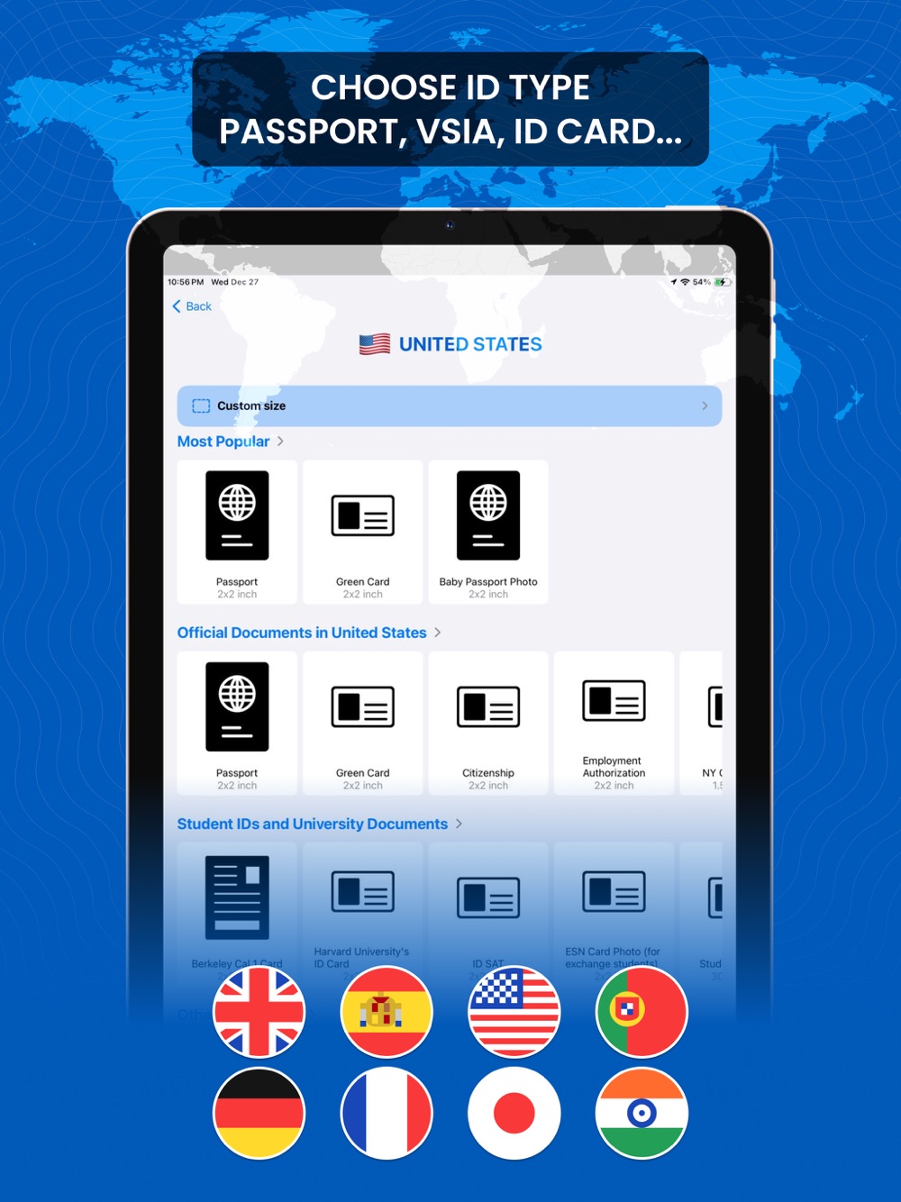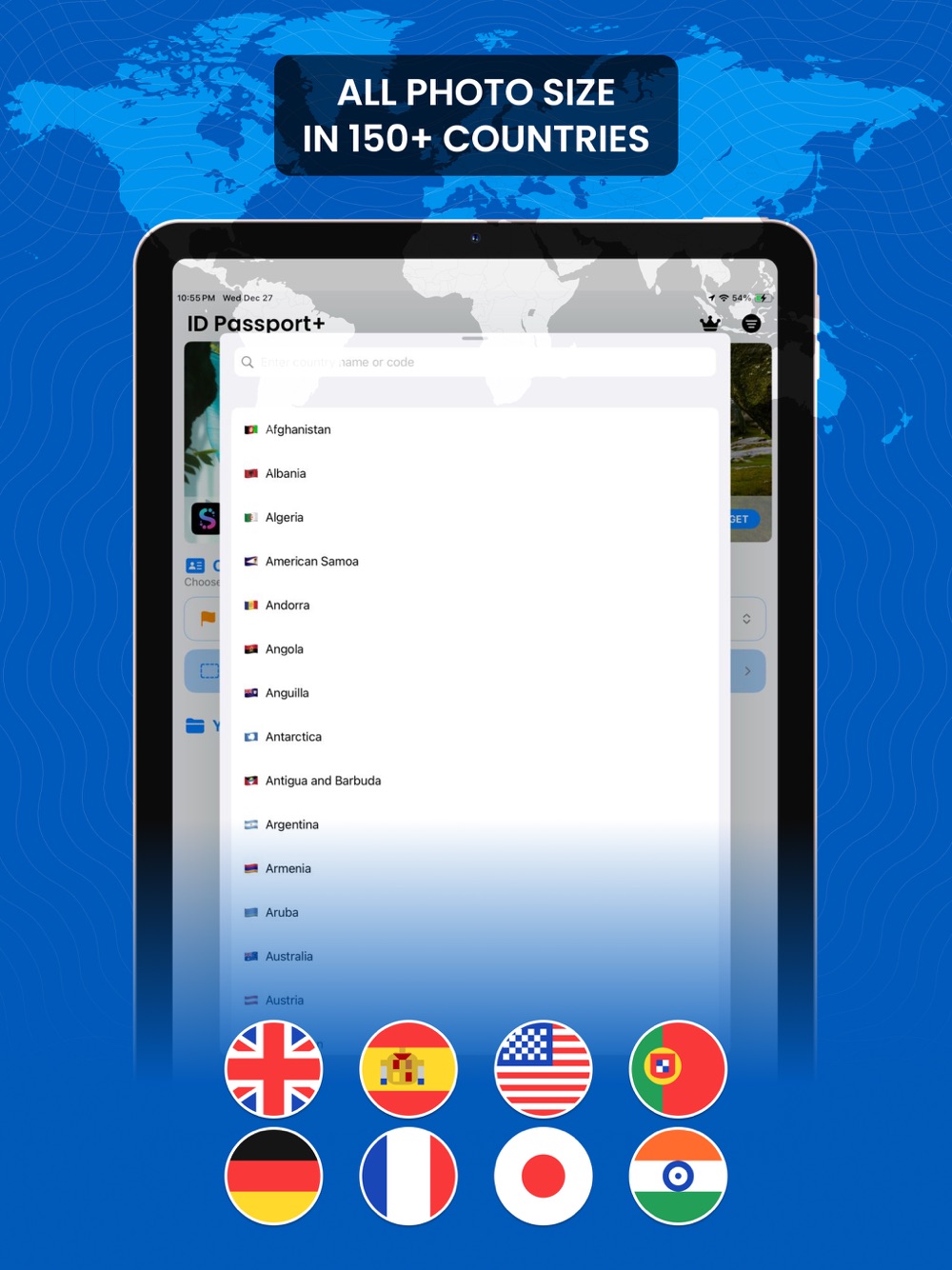 The app already provides passport photo templates for the following countries: