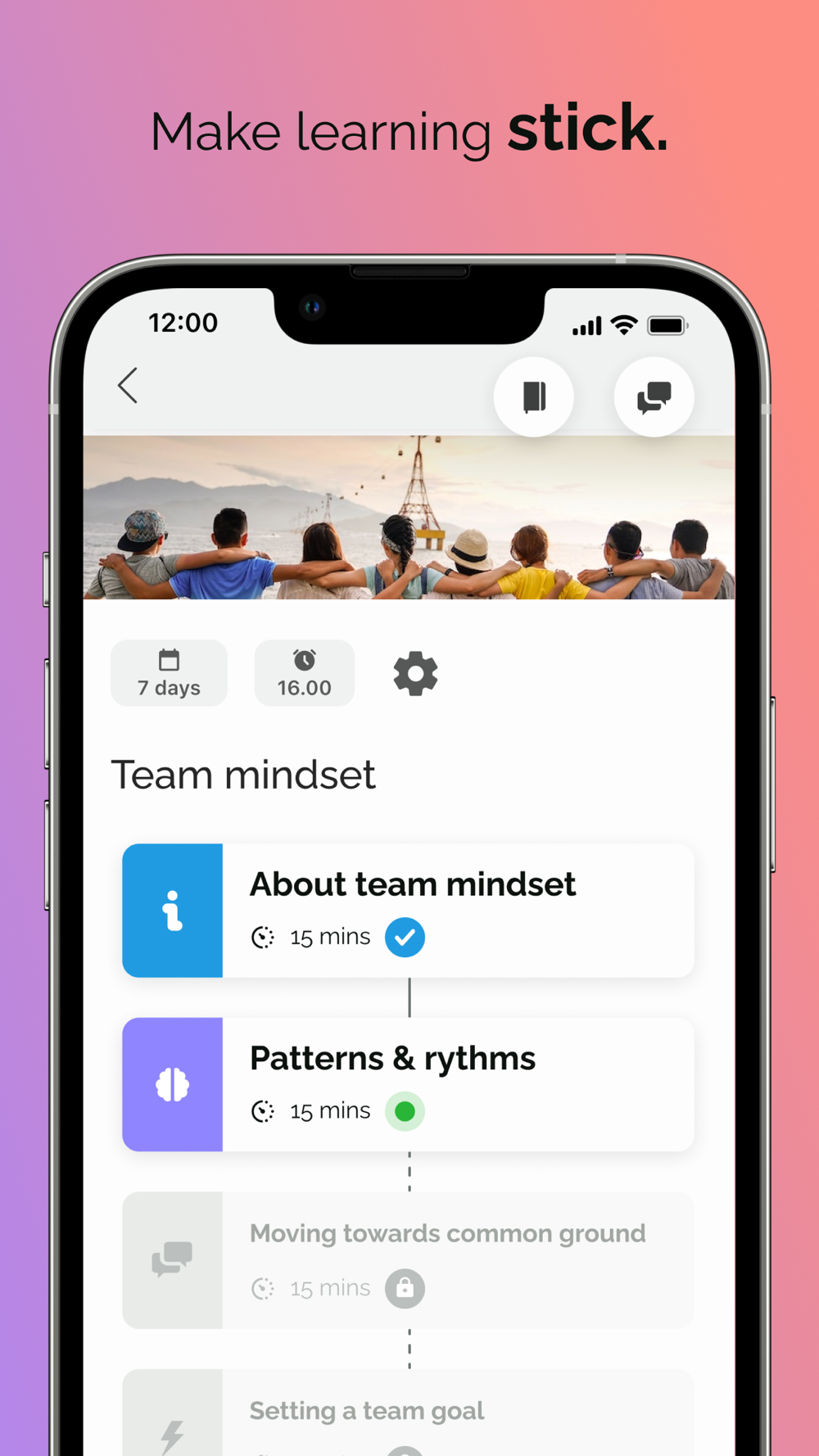 Minders helps you turn knowledge into behavioral change, through micro-learnings and small everyday actions that you can integrate into your daily life! Create your own journey together with your team or embark on a tailored journey that fits your personal needs.