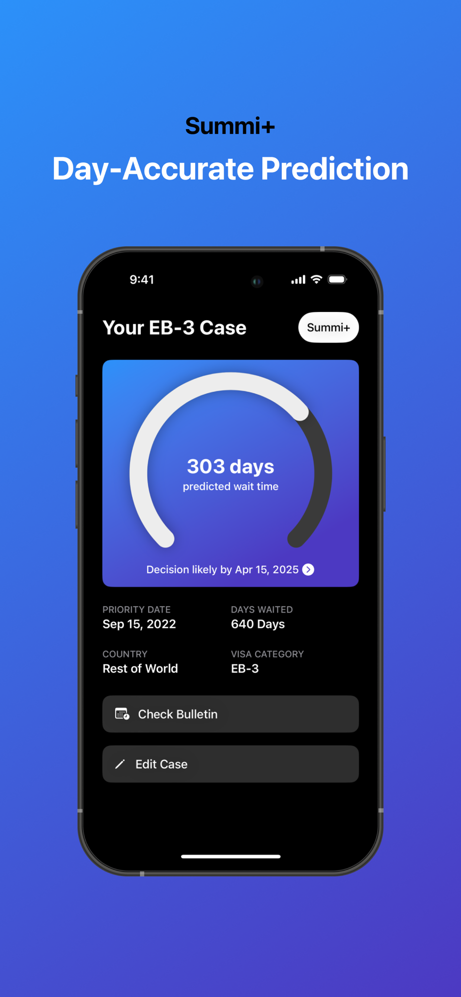 Still waiting on your immigration case? Summi gives you accurate wait time predictions for your case.