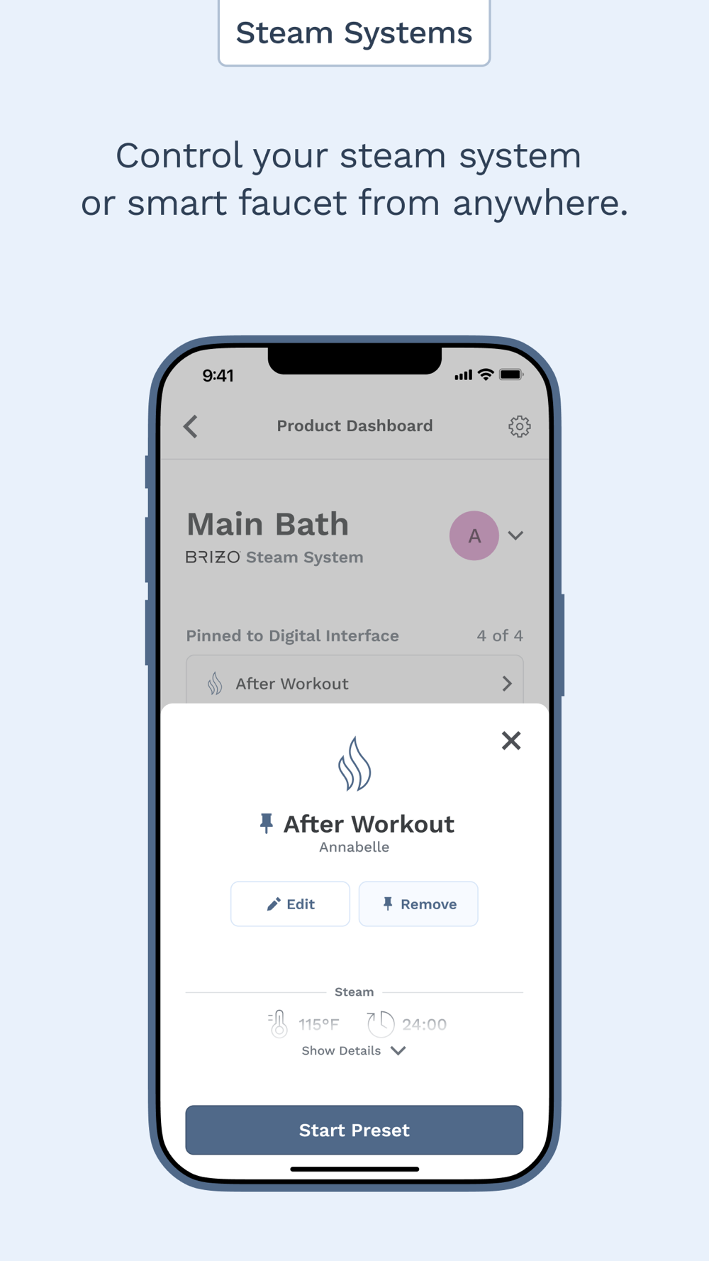DFC@Home™ is a powerful platform that integrates with connected Brizo® and Delta® products. Depending on which product(s) you own, you can customize your controls within the app, and start your products remotely.