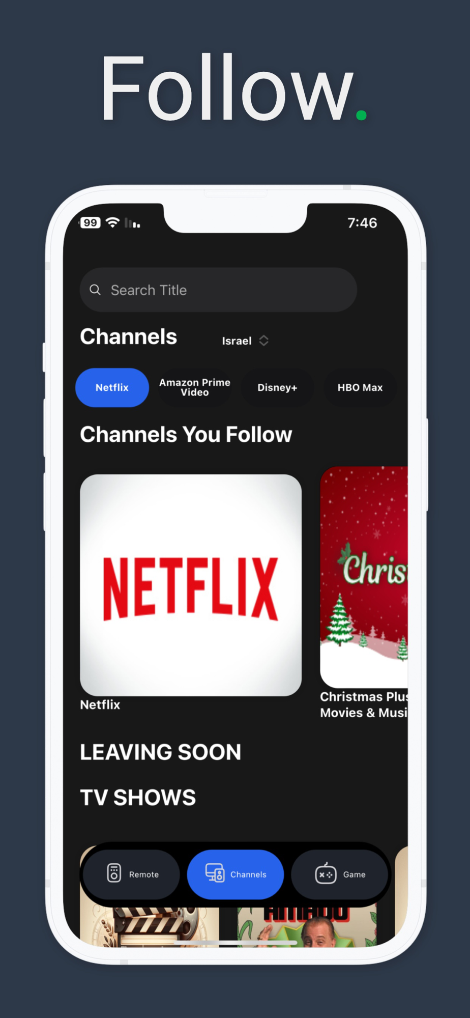 Channels & TV Shows Tracking: Follow your favorite channels and TV shows. Get personalized recommendations based on your streaming service subscriptions and country.