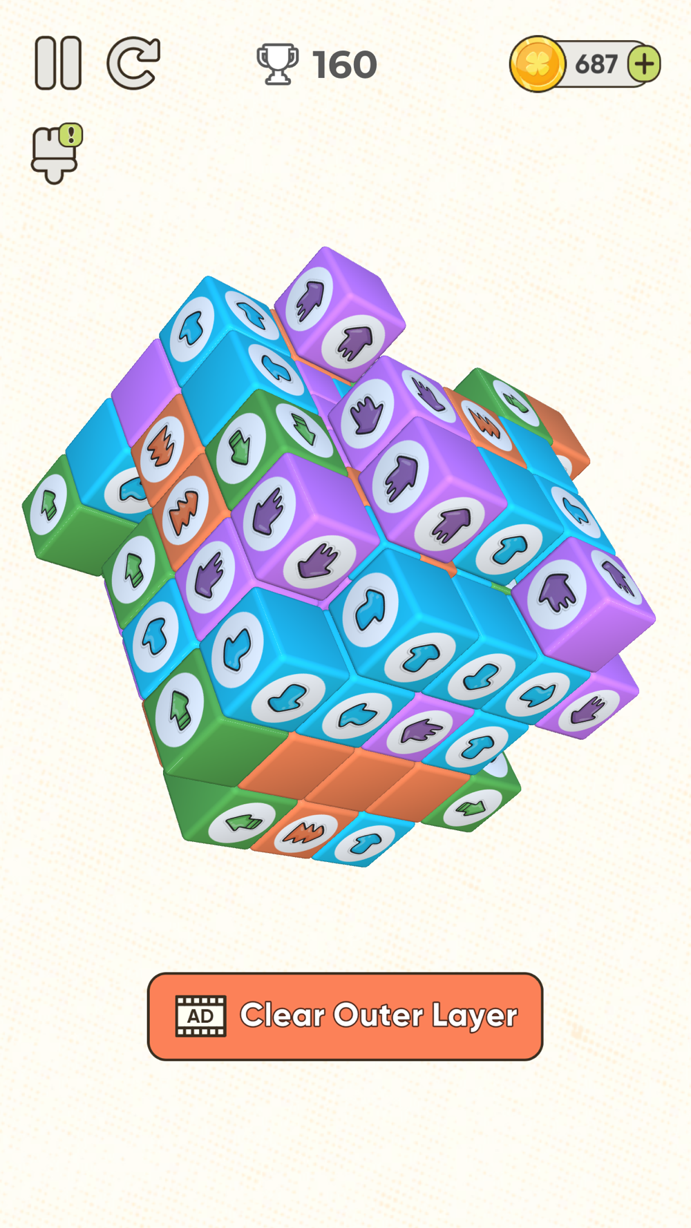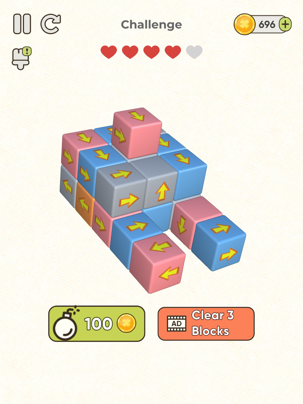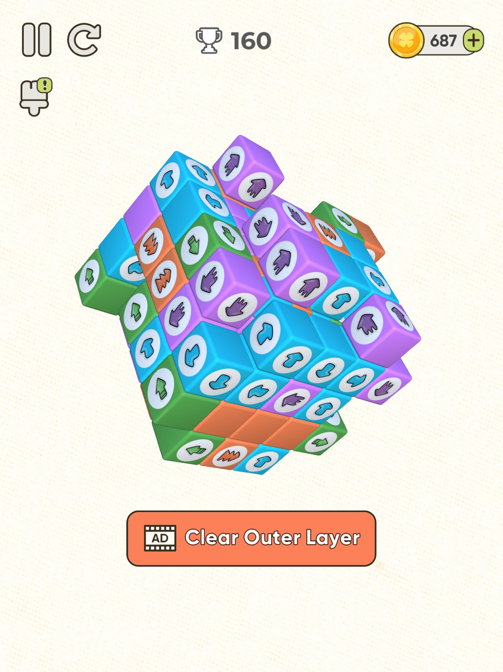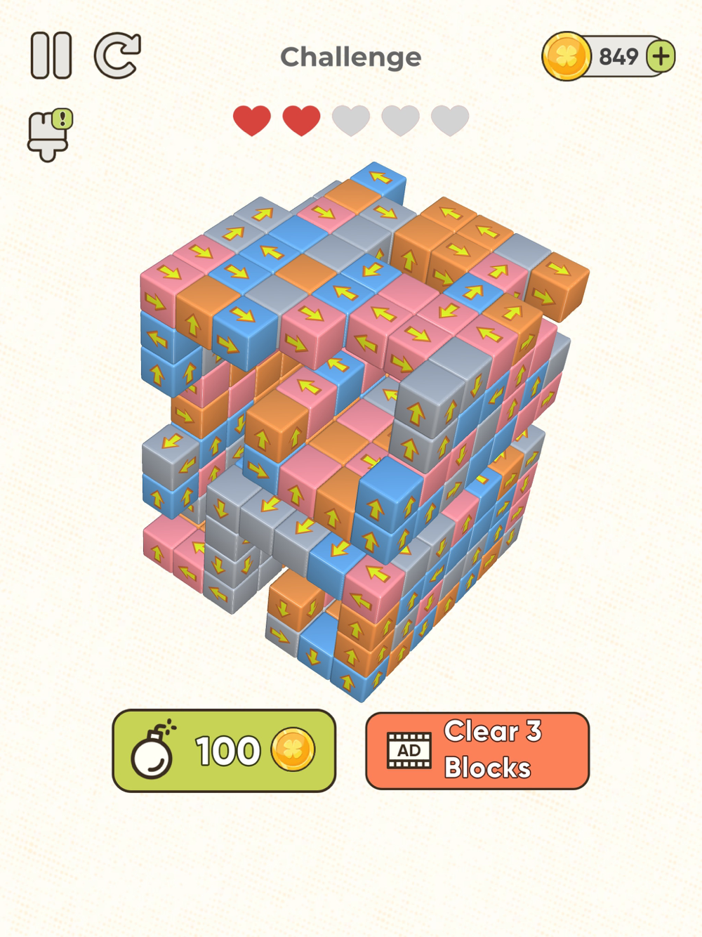 Solve 3D Puzzle game by tapping each block in right direction. Relax your mind, relieve your stress.