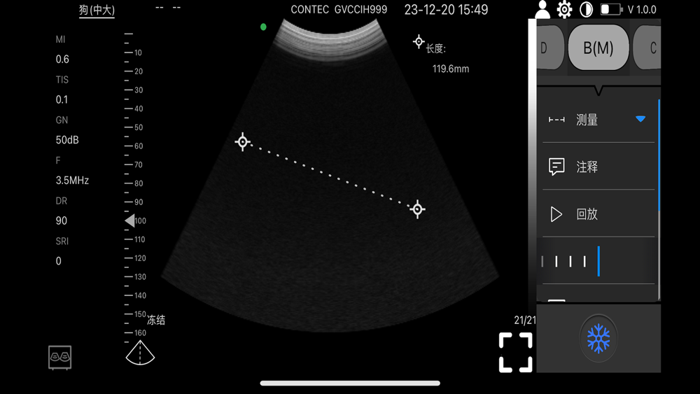 1. Multiple measurement modes are preset, supporting animals such as canine, feline, bovine, equine, ovine,etc. Different animals have measurement functions such as body cavity diameter, head and hip length, and gestational sac.