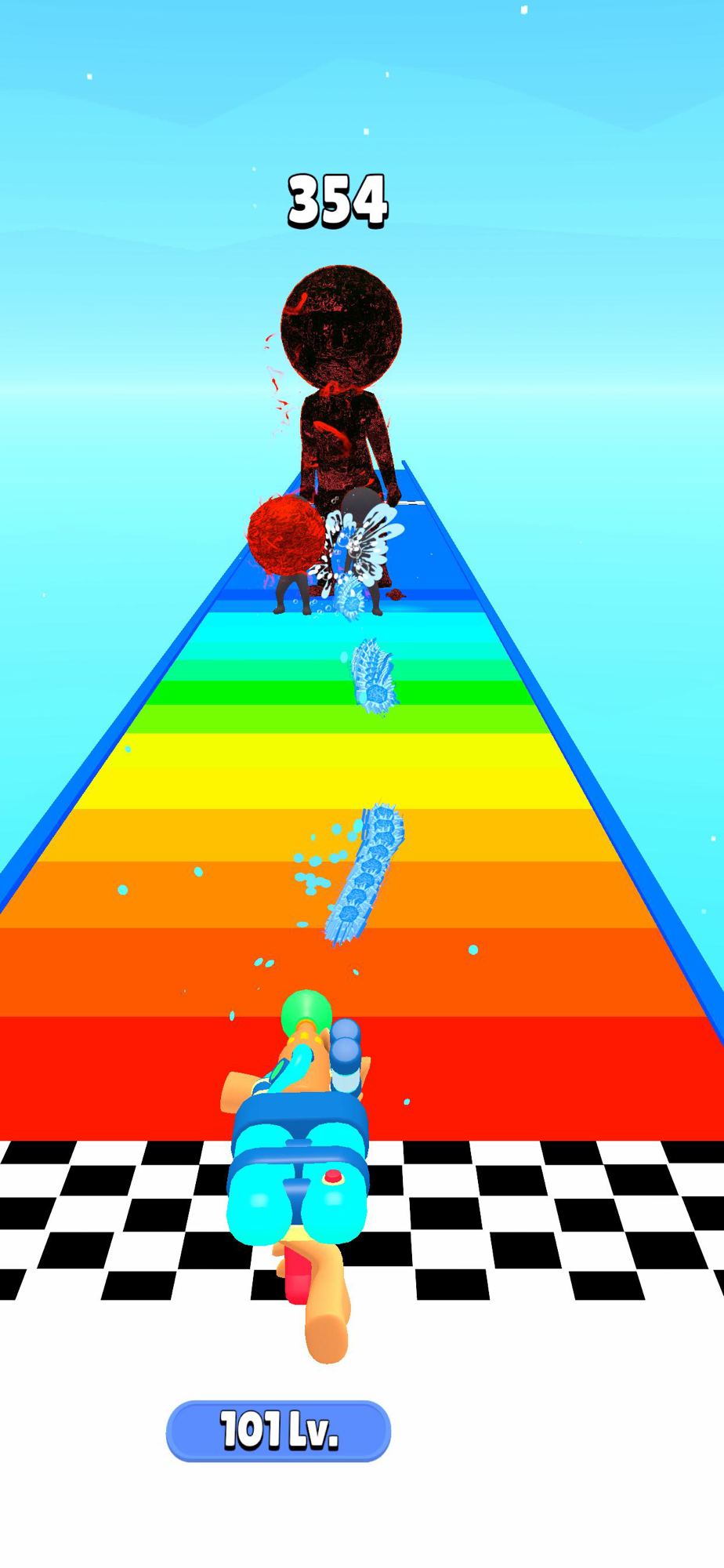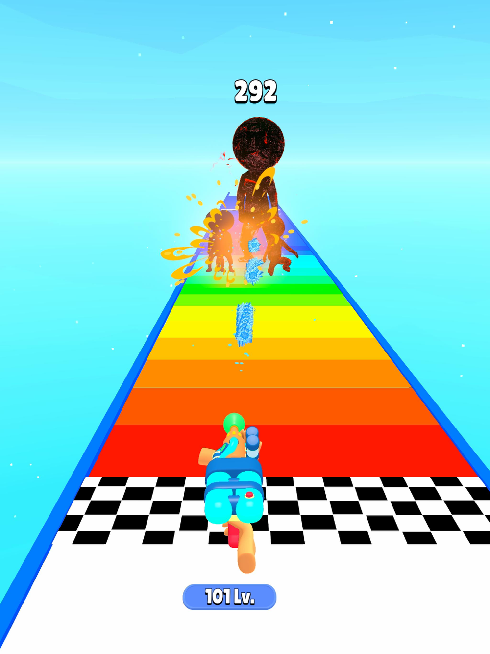 You need to upgrade your water gun as much as you can so that you can estinguish those level end mosters! Be careful they can attack with different ways.