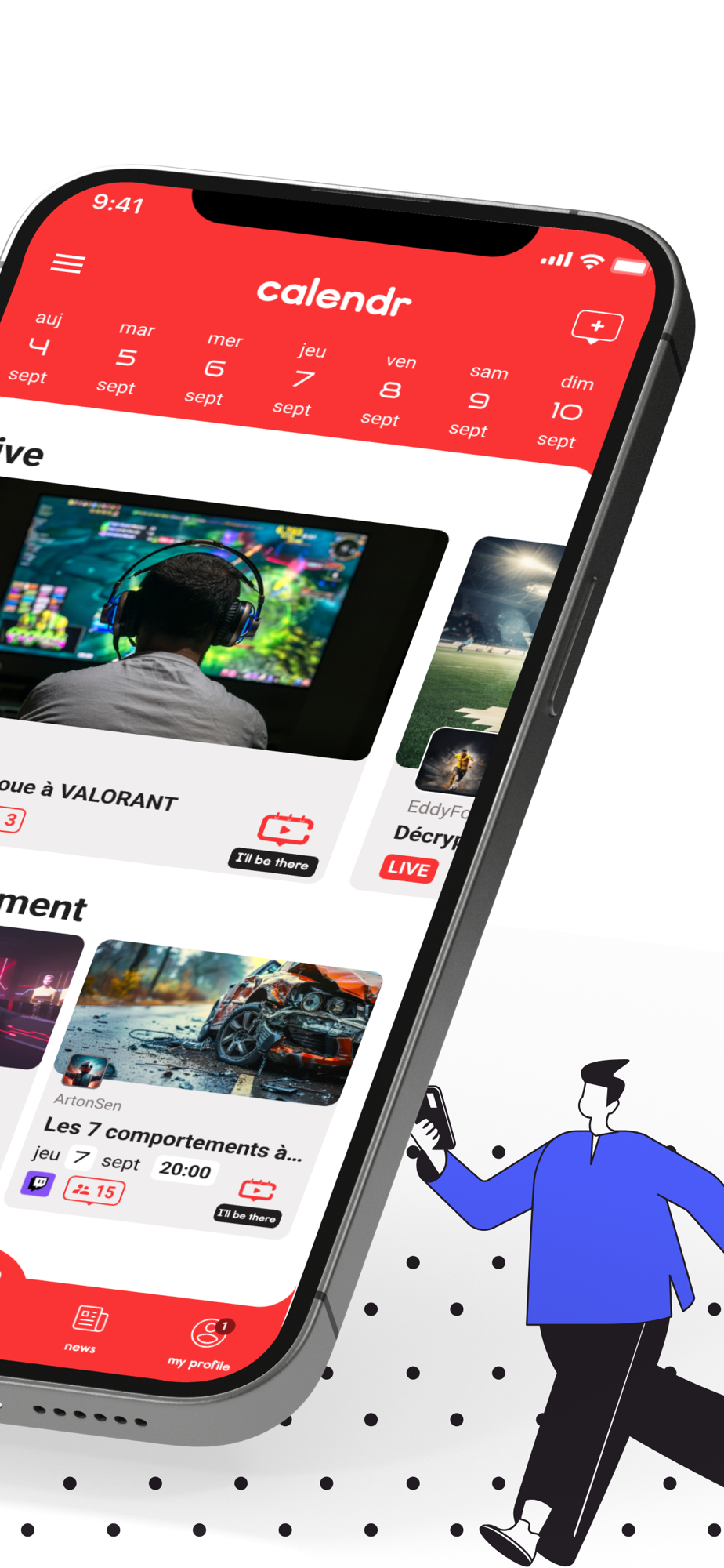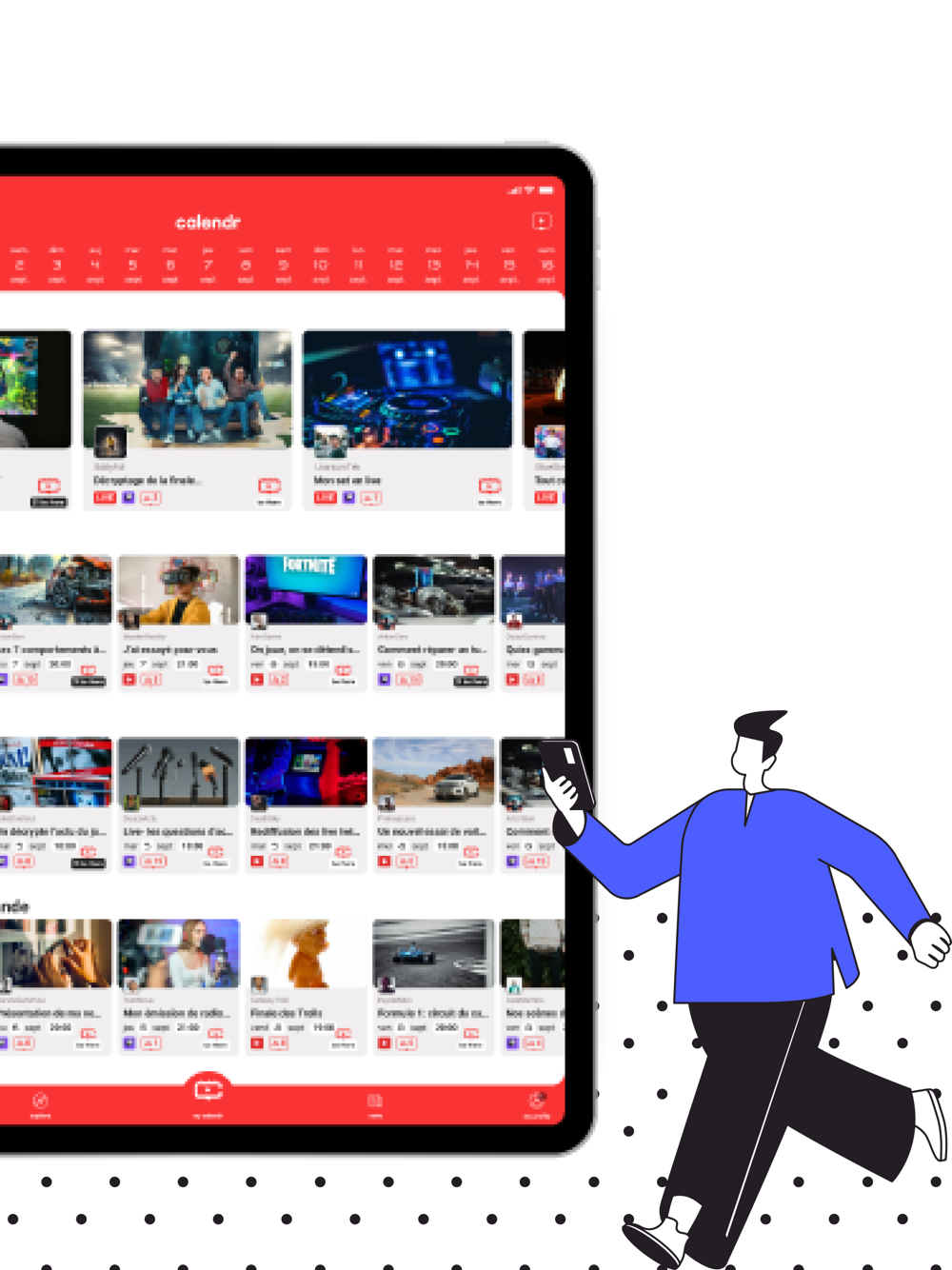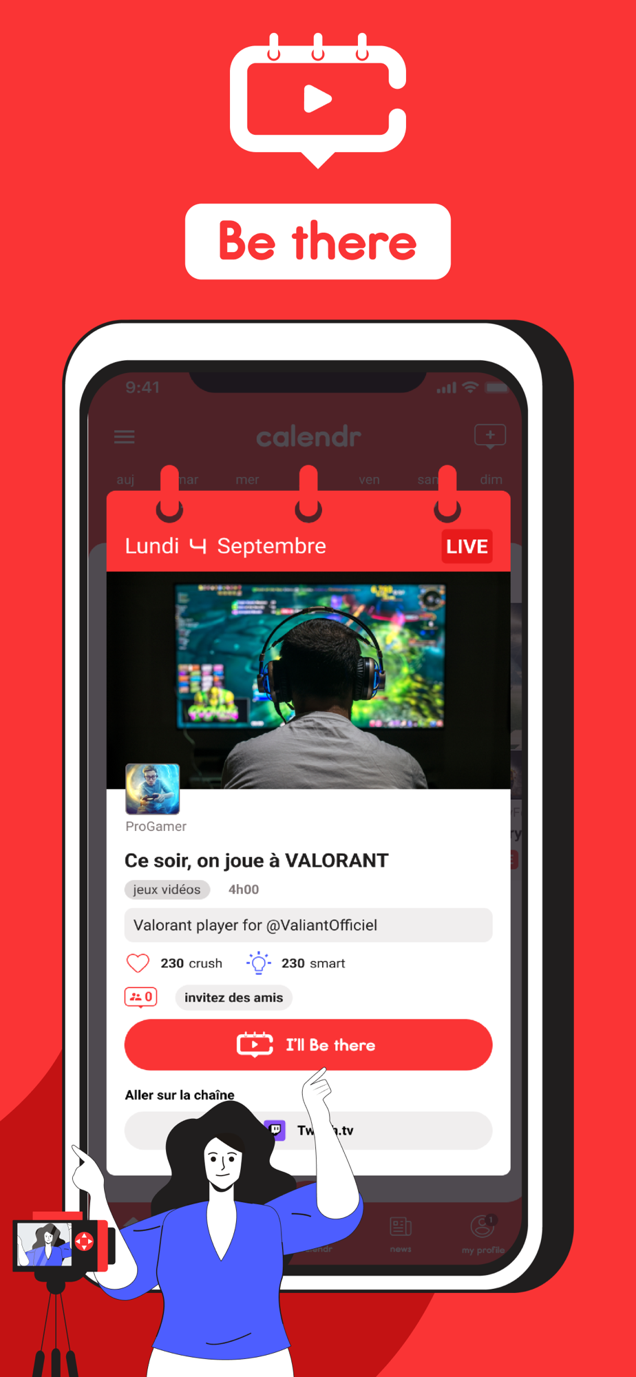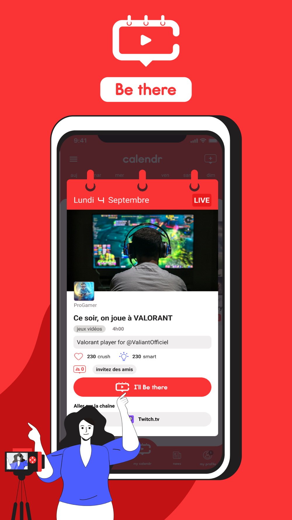 Date, heure, plateforme, talent… AVEC CALENDR, découvrez le programme à venir de vos streamers et créateurs de contenu favoris. Ne ratez plus leurs events !