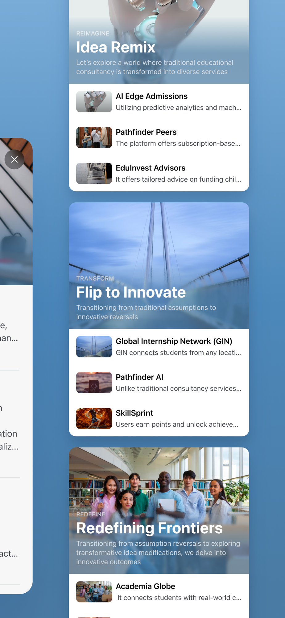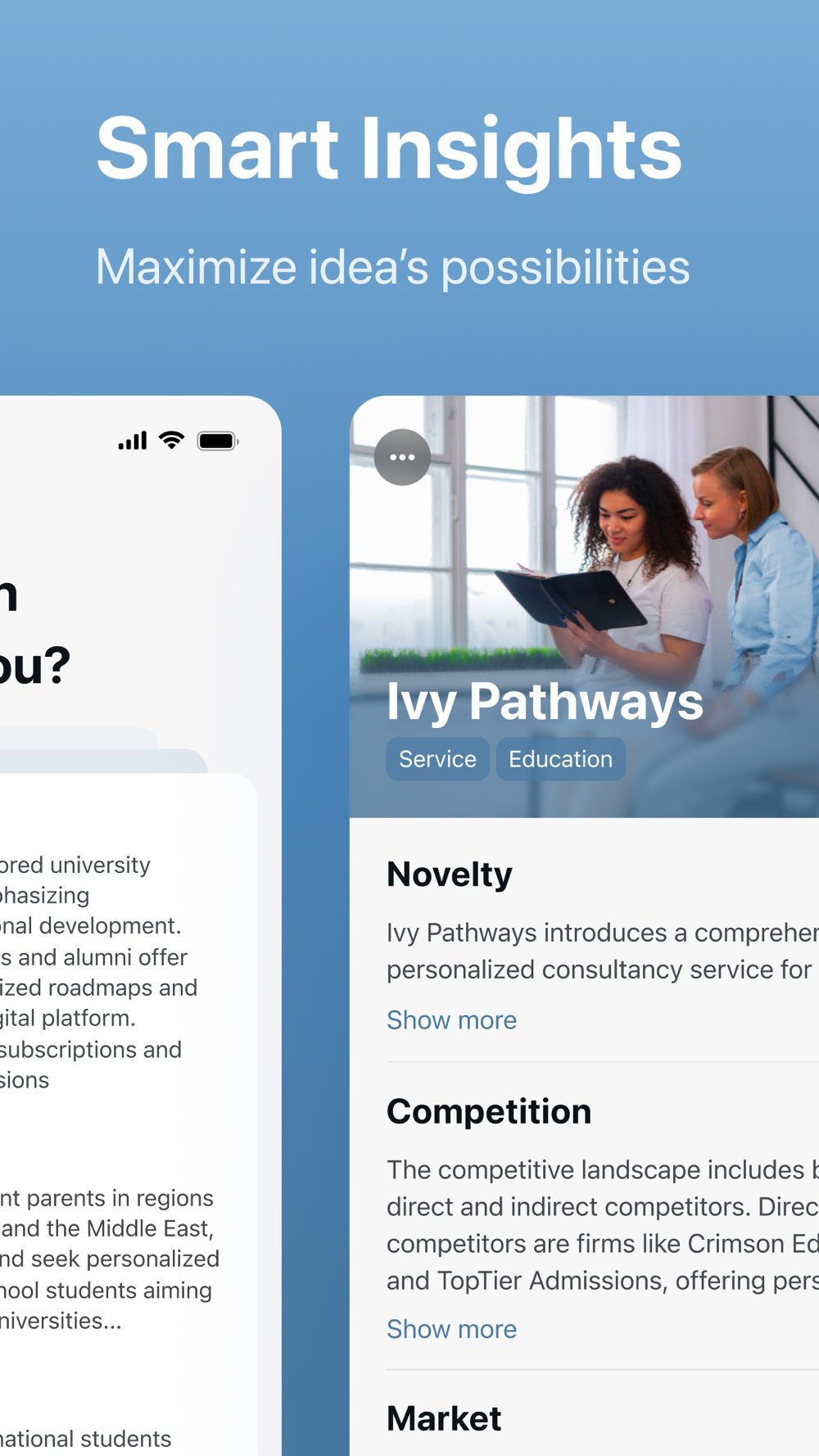 Unleash your creativity and explore diverse business ideas with IdeaMate. Whether you're an entrepreneur, a creative thinker, or someone eager to explore new possibilities, our app is your ultimate tool for transforming thoughts into innovative business concepts.