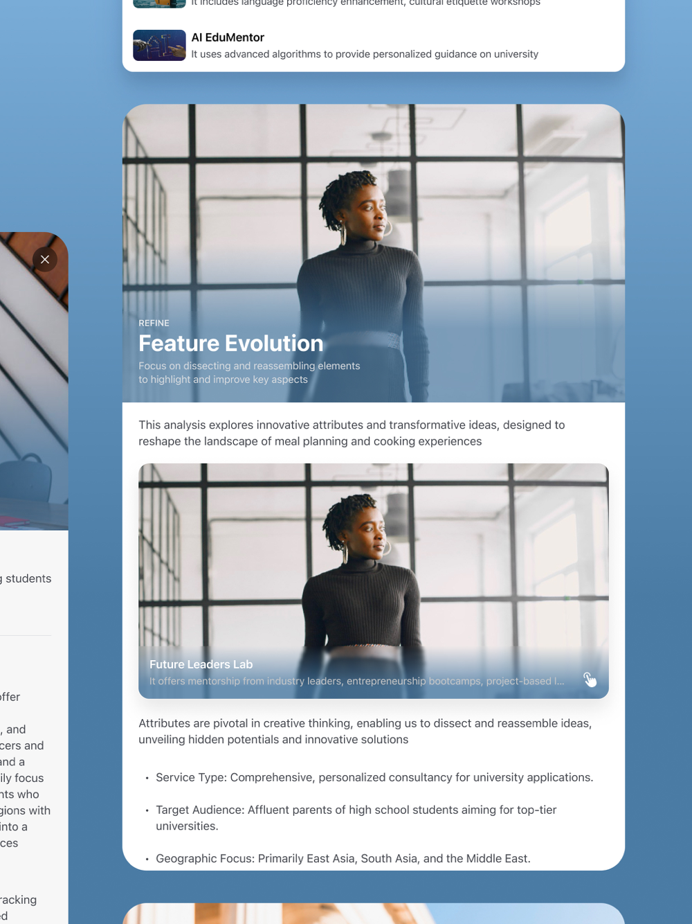 • Effortless Brainstorming: With our user-friendly UI, you can easily launch our idea generation engine in four simple and straightforward steps. IdeaMate helps you define and enhance your thoughts, transforming them into interesting, creative product ideas.